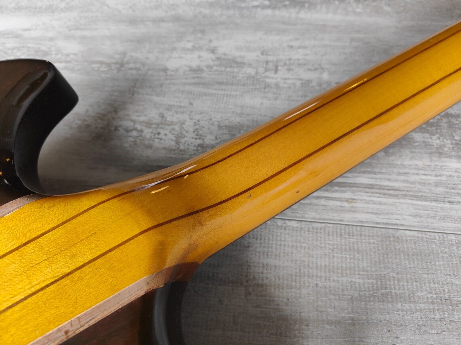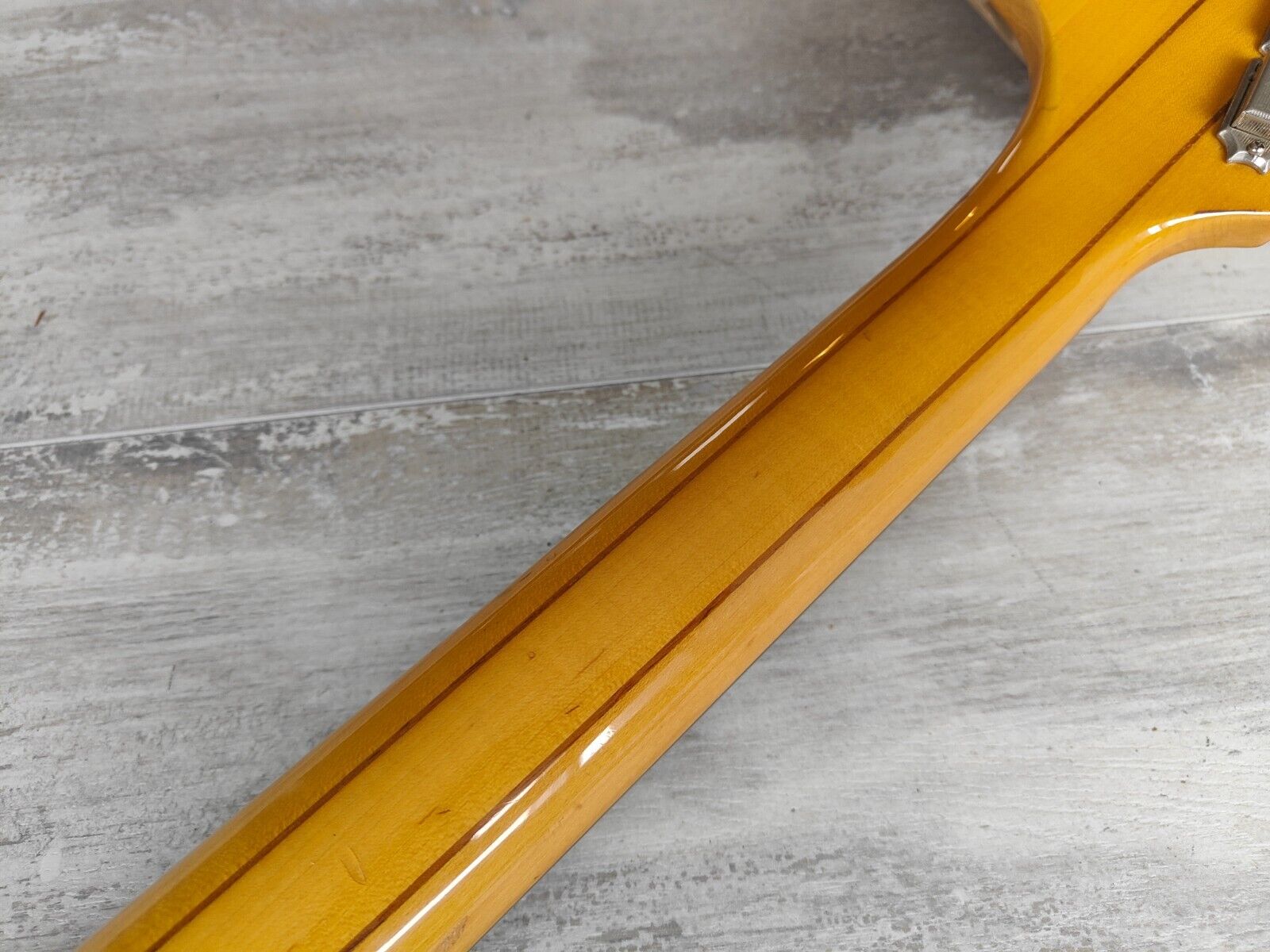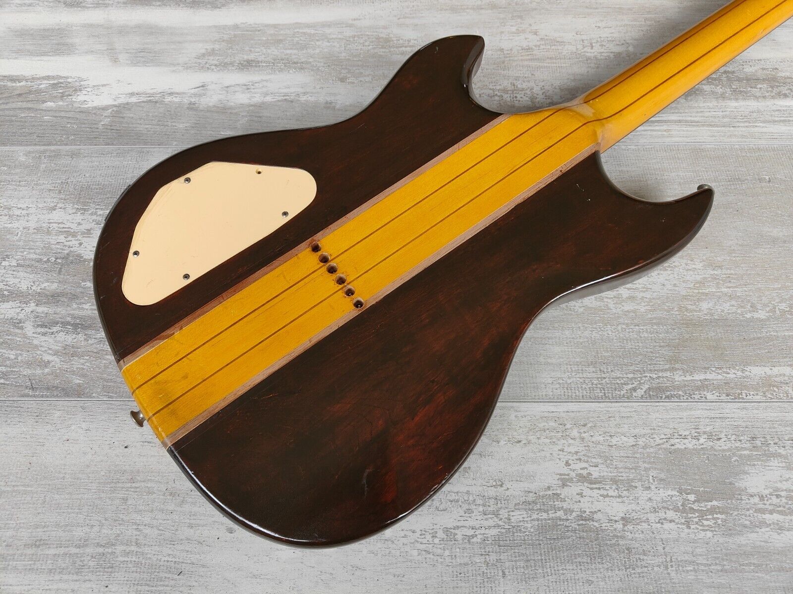Good vintage condition as pictured with no breaks or repairs, neck is straight and the truss works well. Frets are in good condition with some light signs of wear. Some of the clear coat on the back has peeled off along the walnut.