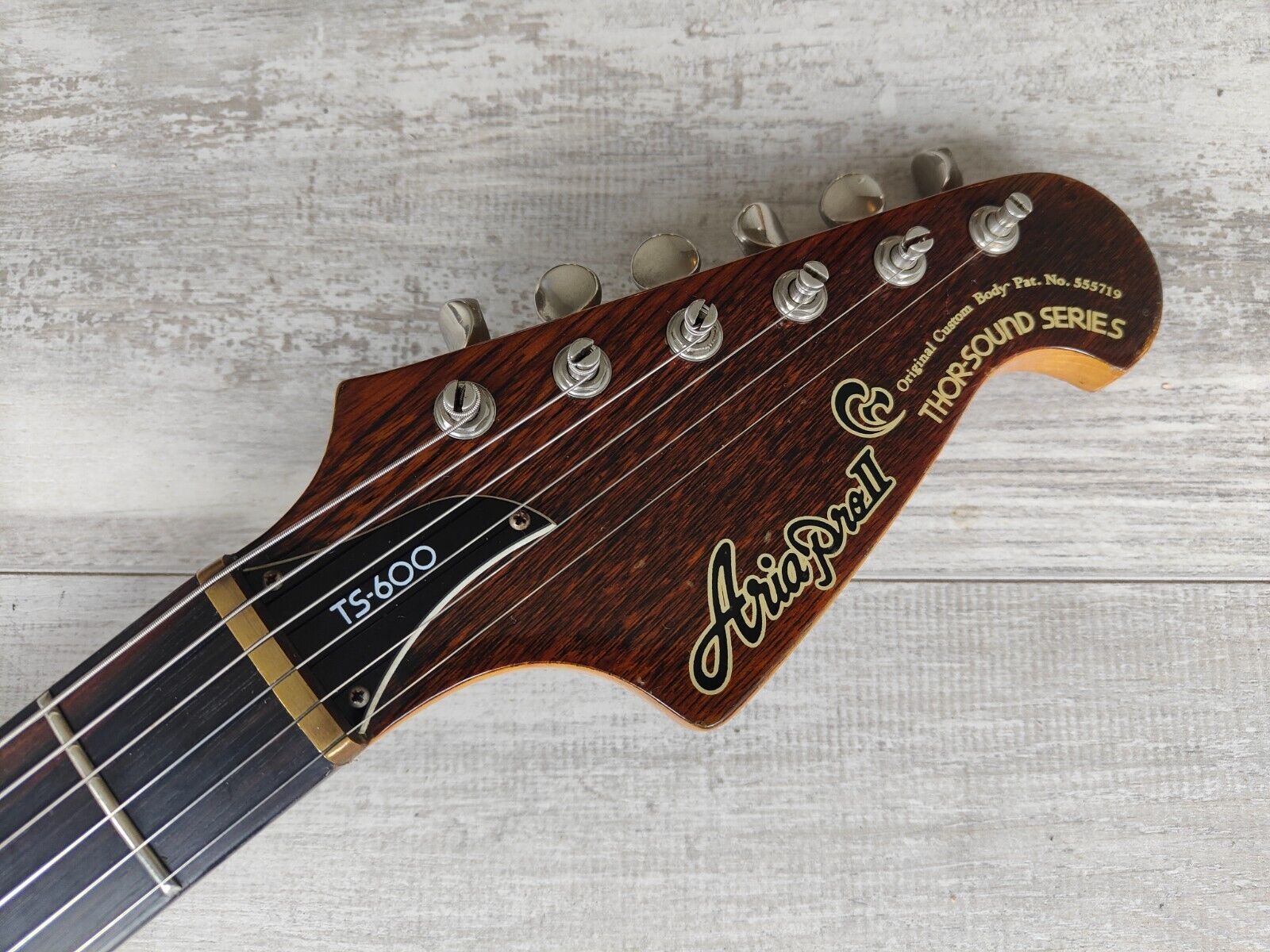 Made in Japan in 1980, this is a first edition TS-600 model with the original headstock design/logo and 6IL tuners. Neckthrough construction with maple/walnut construction with an ash body. Brass nut, 24 fret rosewood fingerboard (648mm scale length) with a nice slim neck profile. Weighs 3.5kg's.