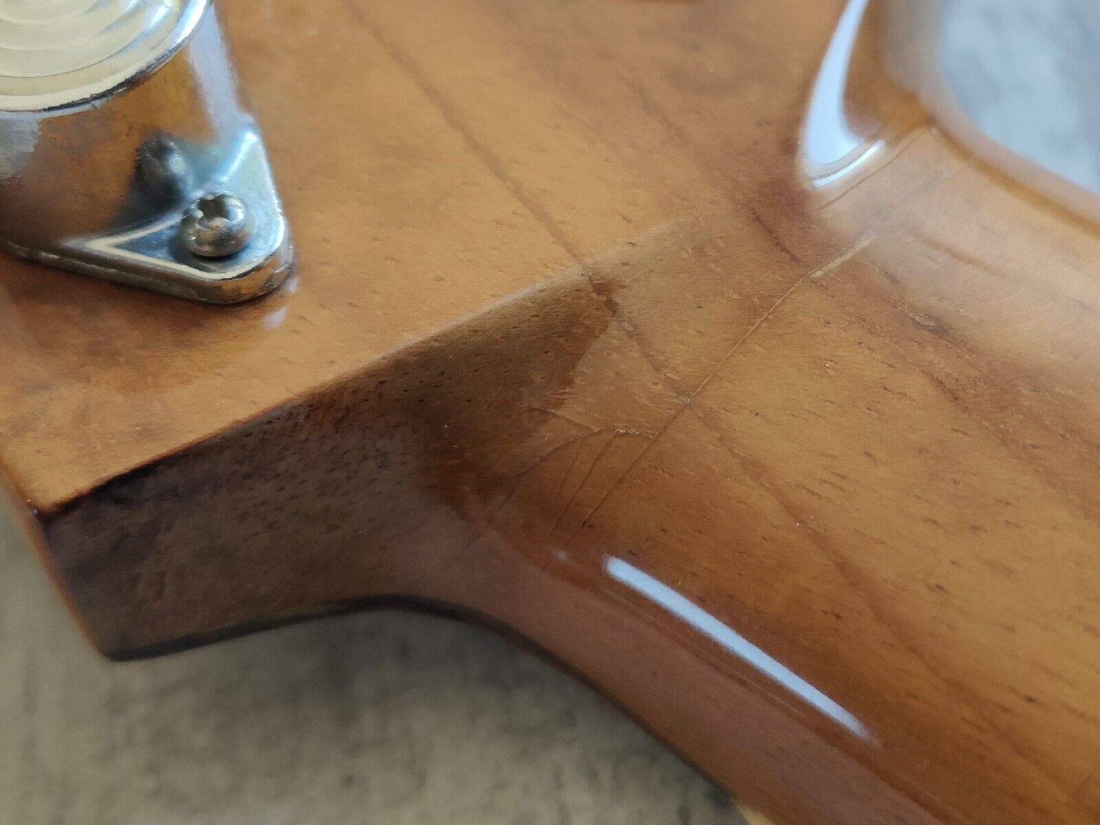 Given a full professional service and setup prior to listing, appears all original as pictured. The frets are shiny and smooth and the neck is straight with a fully adjustable truss. Arrived to us with a very small hairline crack near the headstock that we had professionally repaired by our in-house tech. It's a rock solid repair that's been buffed and is smooth to the touch.