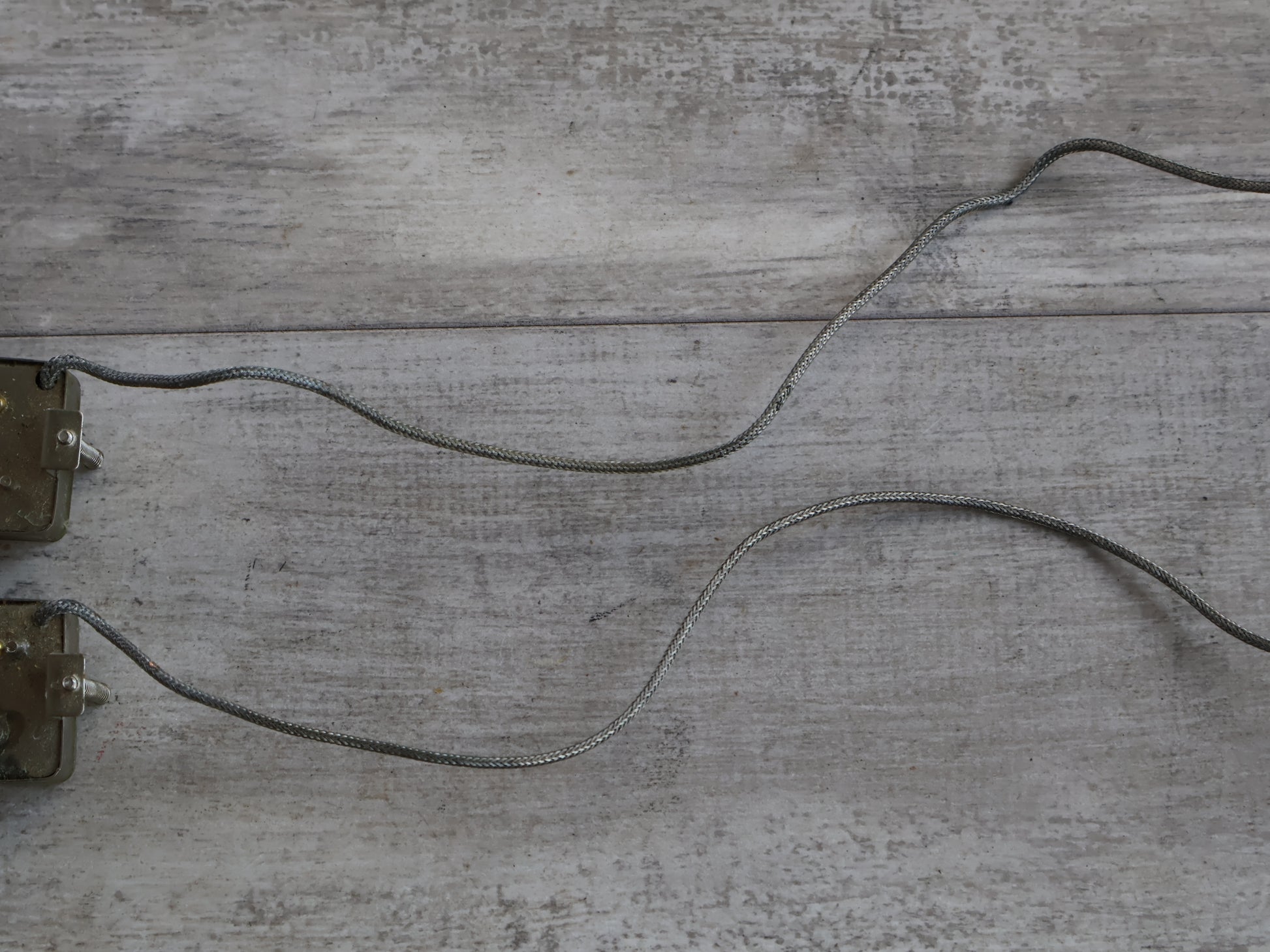 With a reading of 7.70k on the neck pickup and 7.67k on the bridge, they're in very good condition with tasteful patina on the nickel covers and plenty of length in the wires (around 40cm on the neck and 30cm on the bridge).