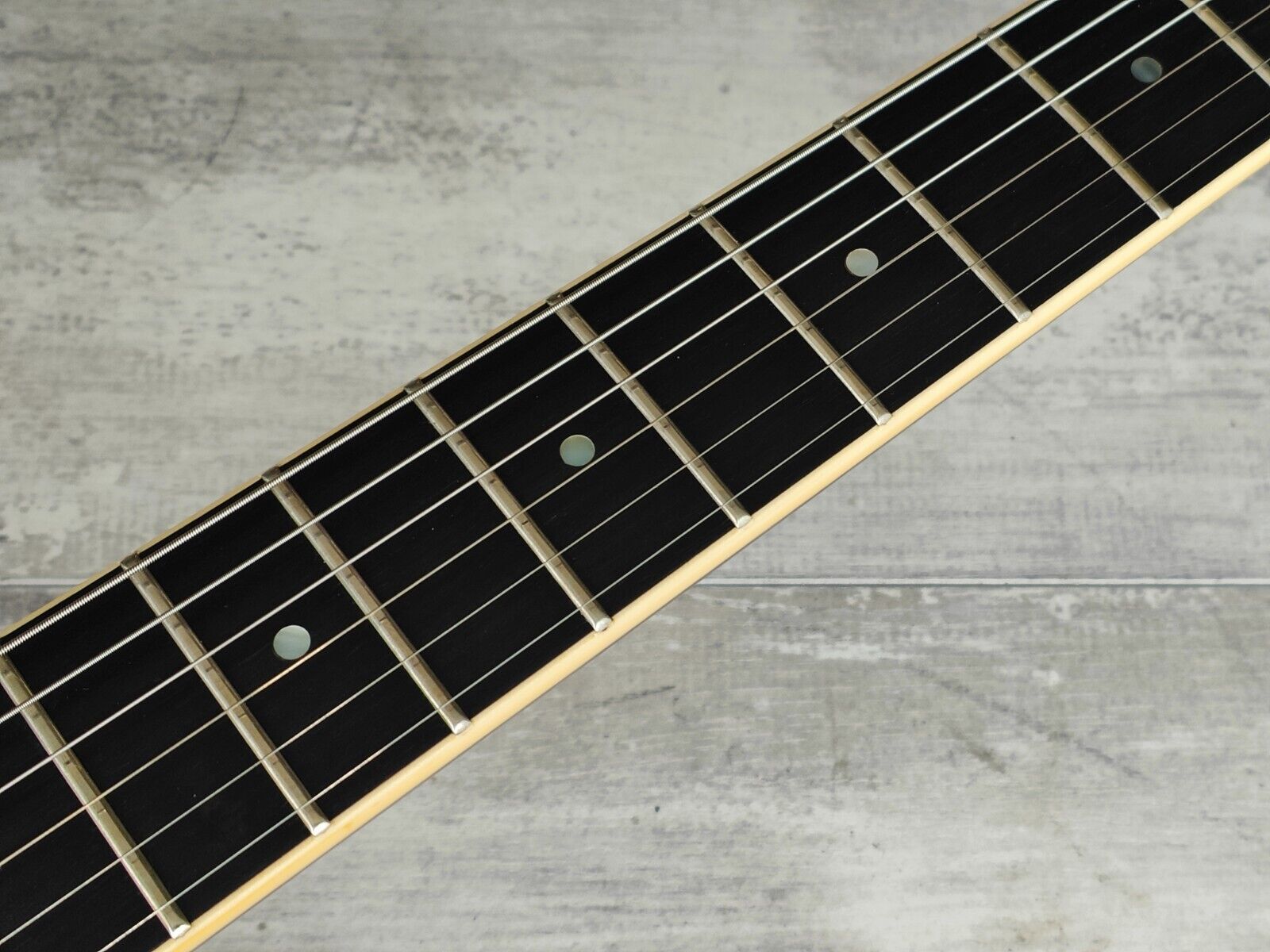 Japanese made in 1980, the SA-1000 was a higher end ES-335 sized model from Yamaha. Bound beech top/back with a maple/spruce centre block, slim C mahogany neck and a bound 22 fret ebony fingerboard (12" radius, 628mm scale length), it weighs a 4.2kg's. Loaded with the original electronics including Yamaha alnico humbuckers and the original Yamaha stamped tuners, it seems to be all original except for a replacement bone nut.