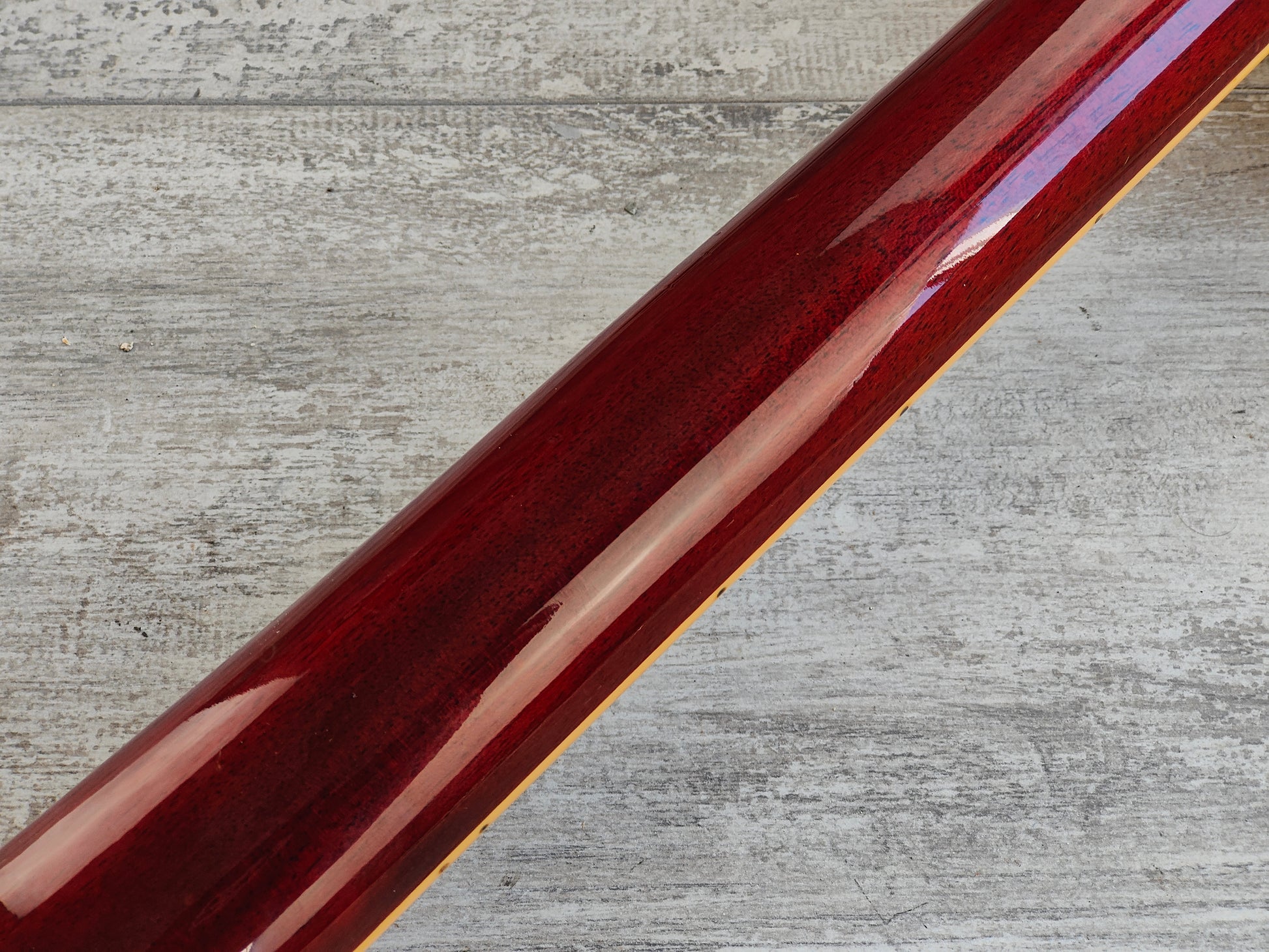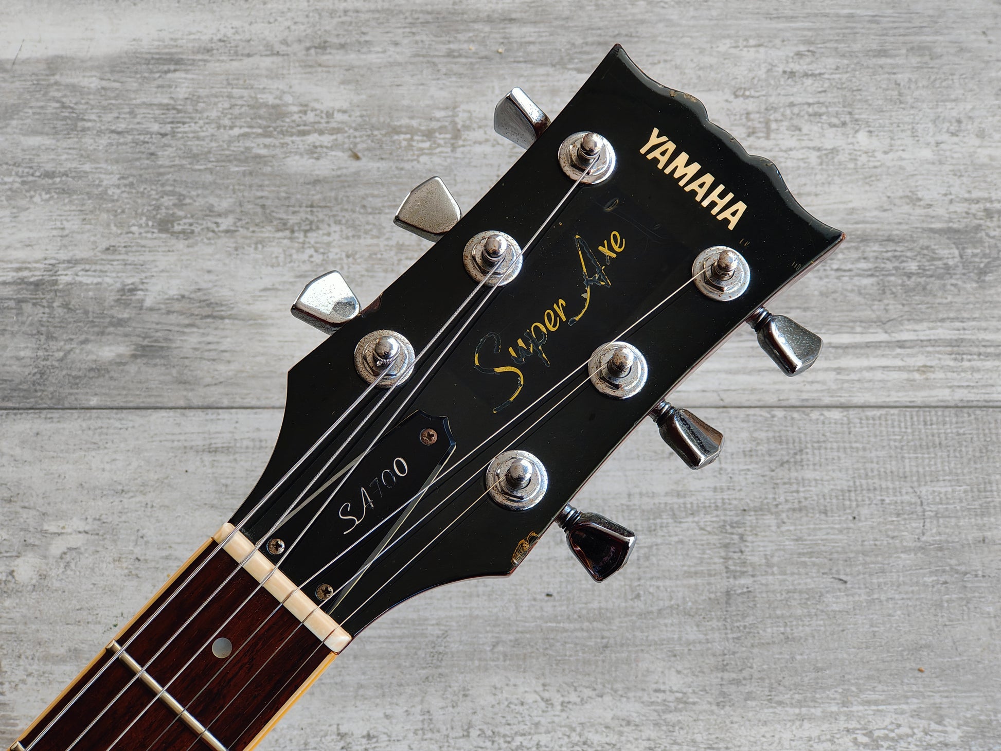 Japanese made in 1980, the SA-700 was a mid-range ES-335 sized model from Yamaha. Bound beech top/back with a birch centre block, generous C profile mahogany neck and a bound 22 fret rosewood fingerboard (12" radius, 628mm scale length), it weighs just over 4kg's. Loaded with the original pots and Yamaha branded pickups (one replacement chrome cover).