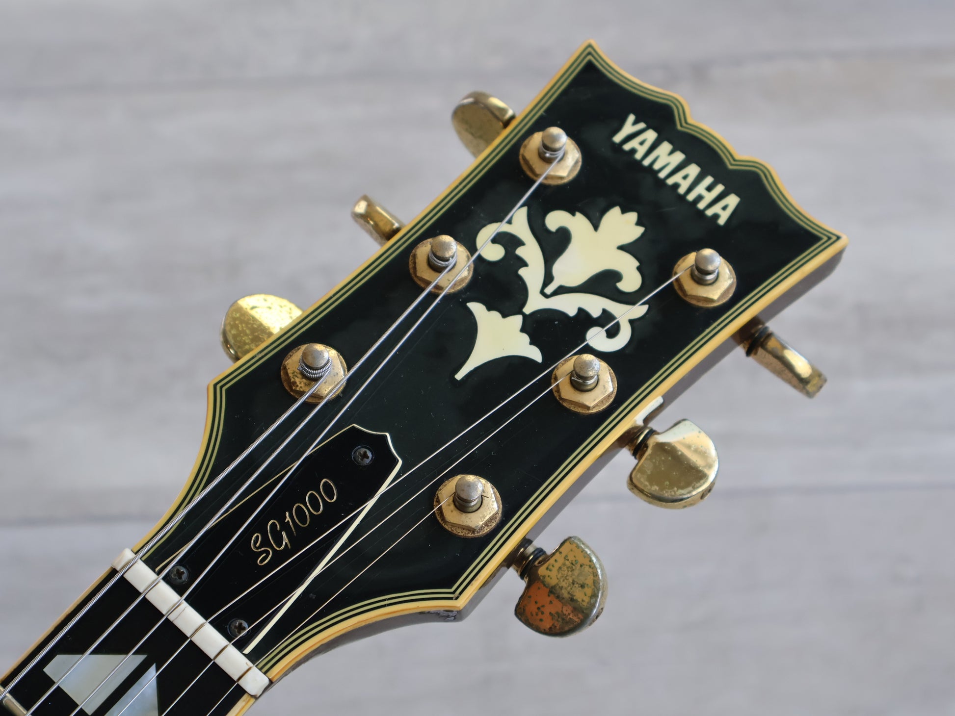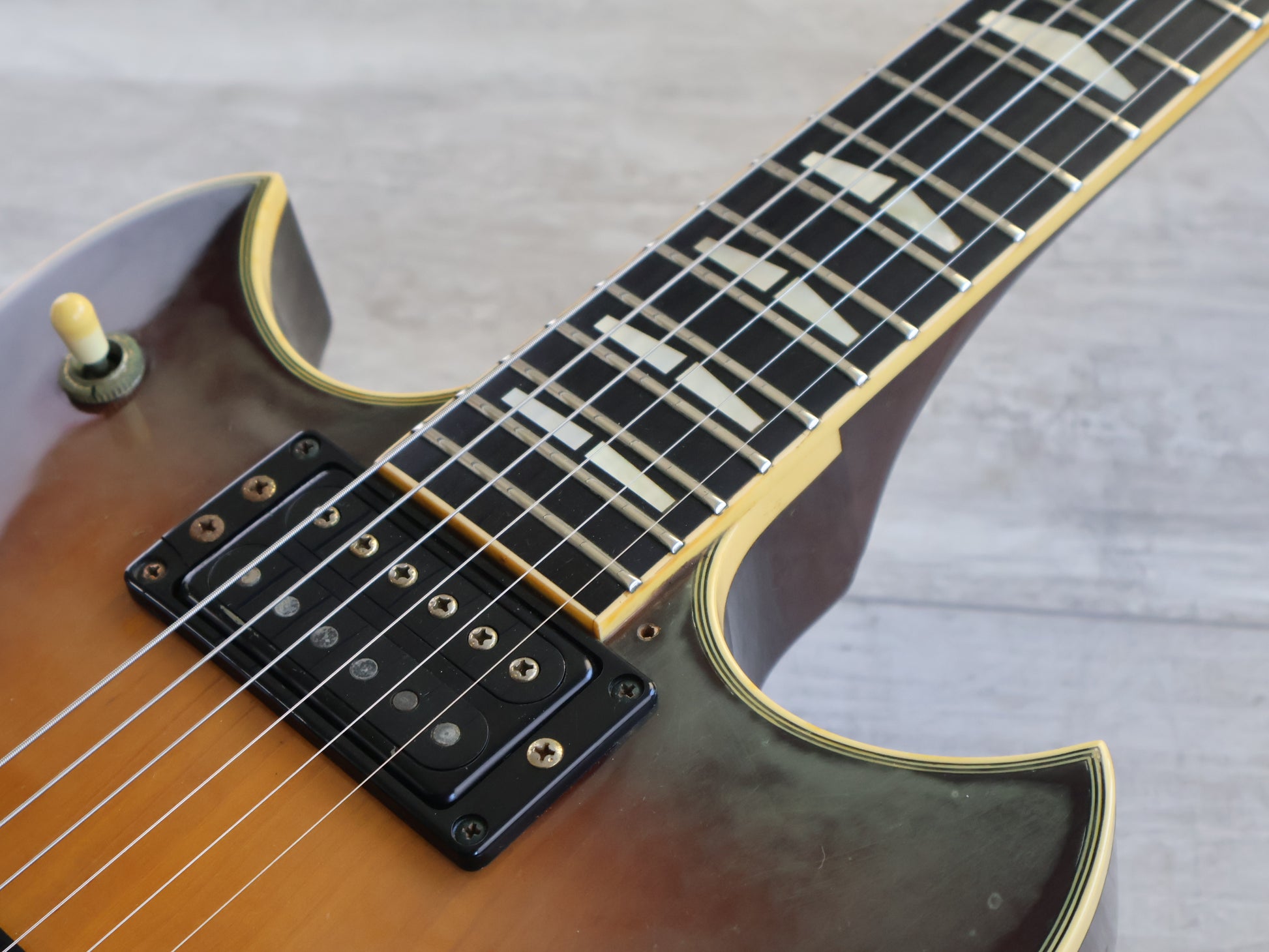 Loaded with the original Yamaha tailpiece, bridge and tuners with, this one has the original SGH-1SOB pickups with push/push coil split switches on the tone knobs.