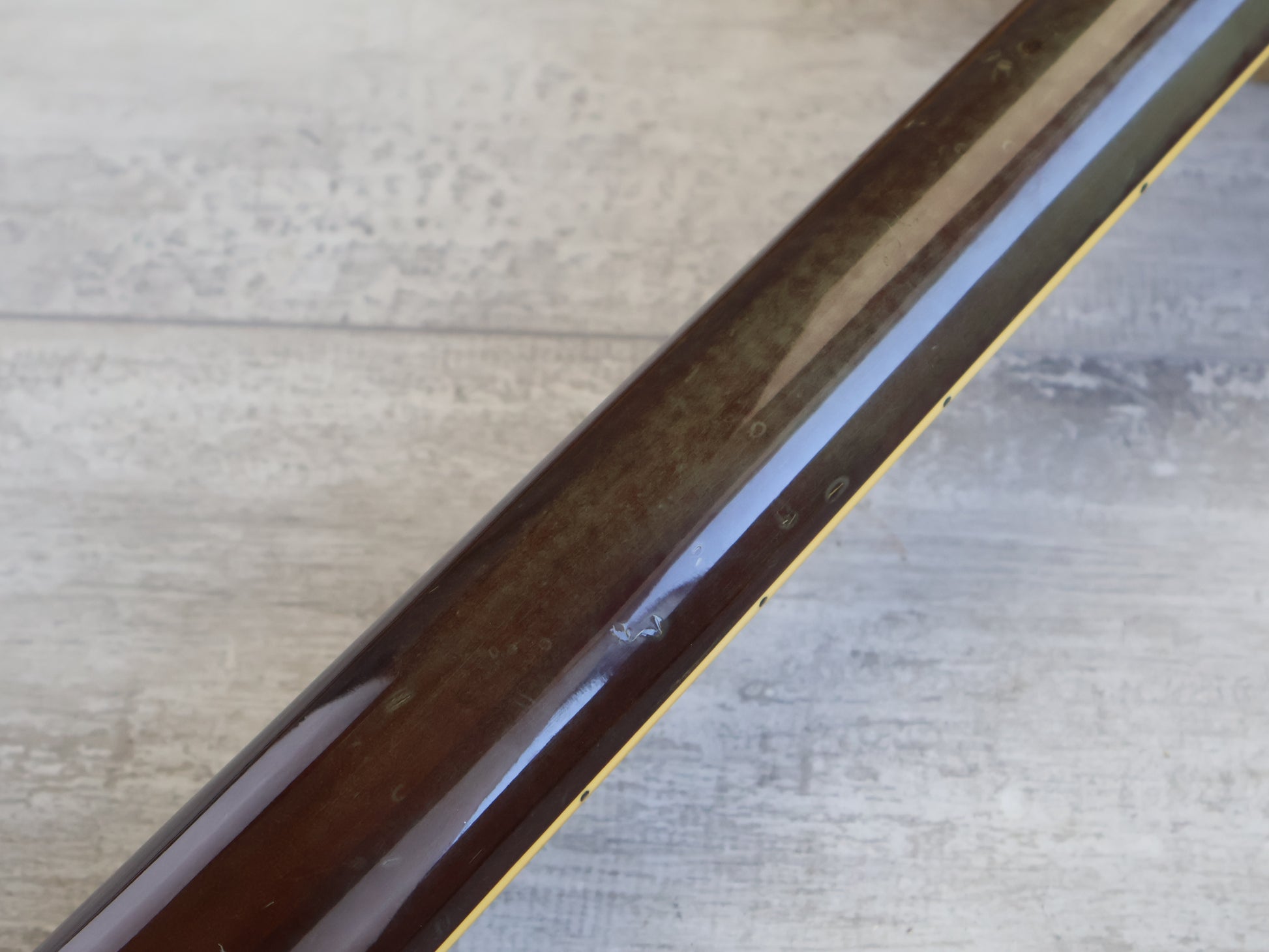 Good used vintage condition as pictured with basic signs of cosmetic wear from use, no repairs or breaks. to be seen. Received a basic setup and service including fretboard clean, fret polish and electronics service. Frets are in reasonable condition for it's age and have life left. The finish has some clouding in the clear coat that's common on old Yamaha models.