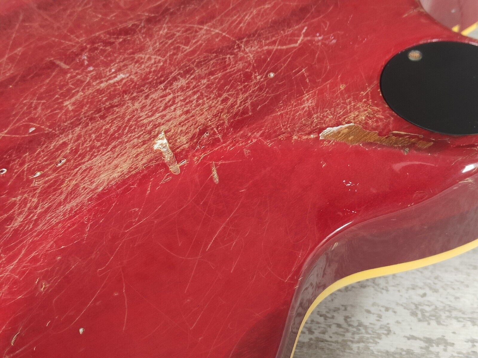 Well used vintage condition as pictured with plenty of signs of cosmetic wear from use, no repairs or breaks though. Received a basic setup and service including fretboard oil, fret polish and electronics service. Frets are in reasonable condition for it's age and have life left.