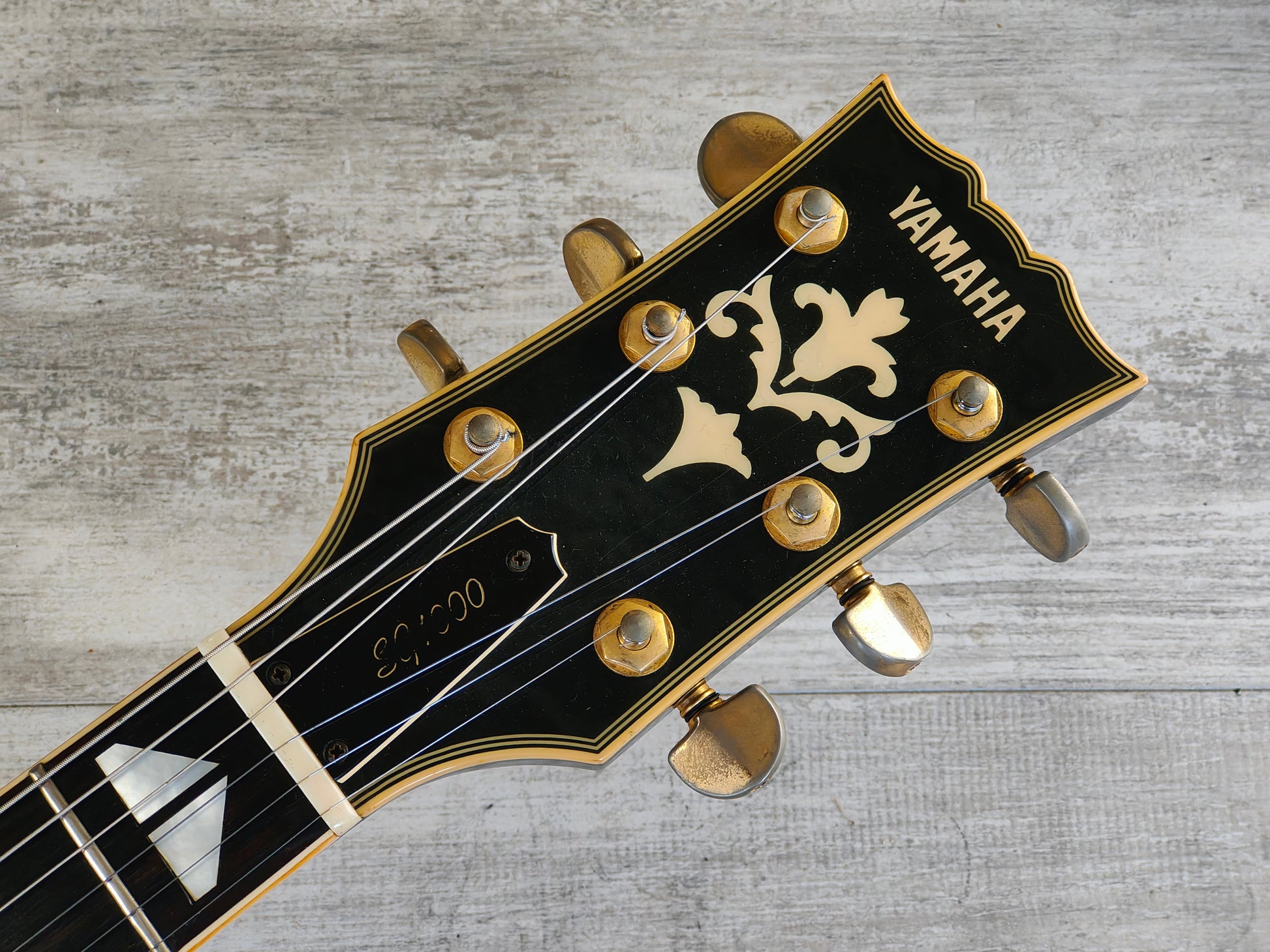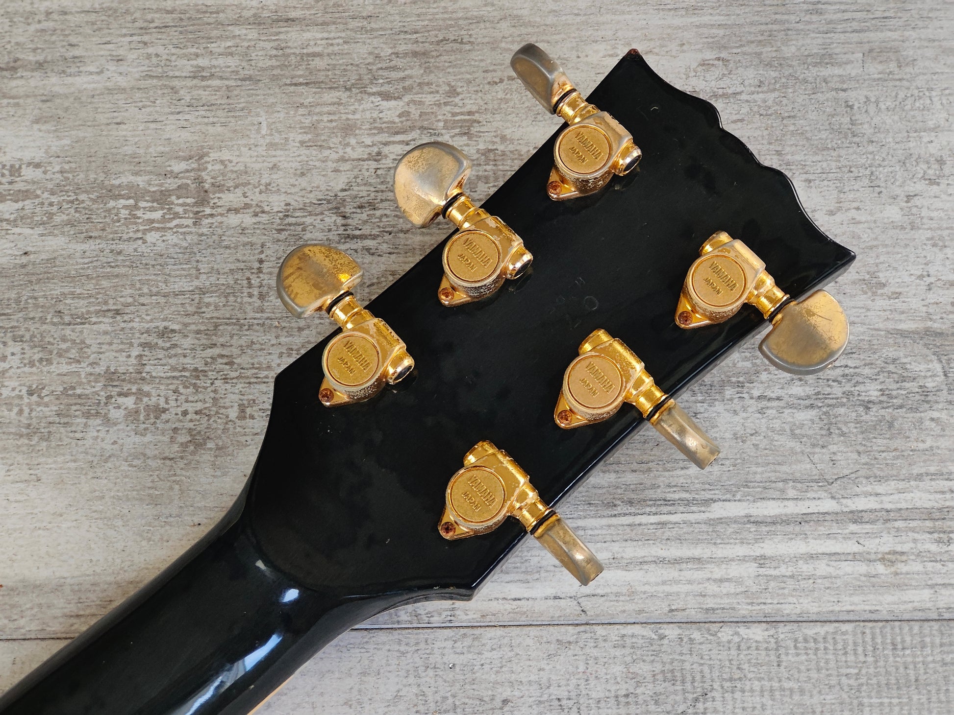 Loaded with the original Yamaha "SGH-1SOB"pickups with coil splits on the tone knobs along with the original bridge, tailpiece and Yamaha stamped tuners.