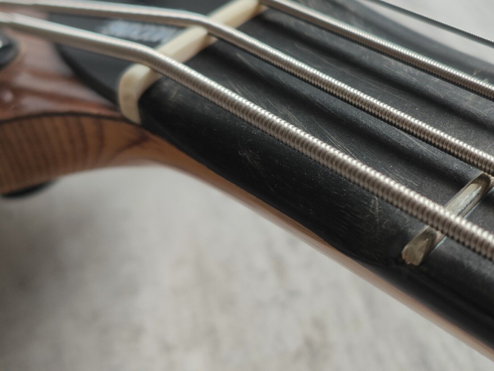 Given a full professional service and setup including a fret polish, truss adjustment and restring. Frets have plenty of life left and the neck is straight, seems all original except for maybe some new pots (two volumes, a master tone and a 3-way pickup selector). This one inexplicably has the first 4 frets of the G string scalloped along with the first fret of the E string. While it may look odd, it's actually very comfortable to play.