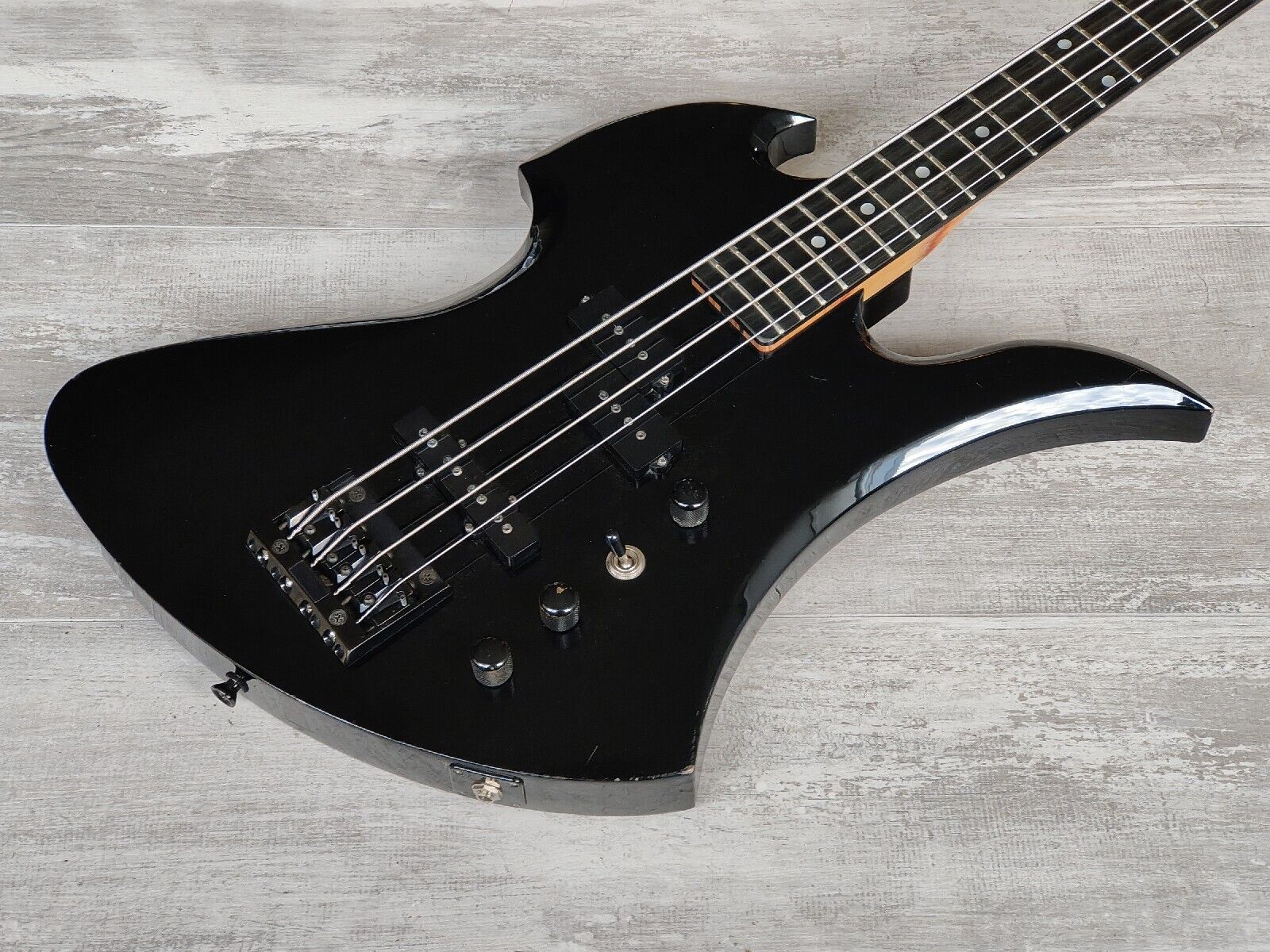 Part of the NJ series ("Nagoya, Japan", not "New Jersey"), this was a Japanese made beast of a bass that will shake just about any wall you put in front of it. Maple body, "Super Wood" Stratabond neck with an ebonic fingerboard (24 frets, 860mm scale length), weighs just over 4kg's.