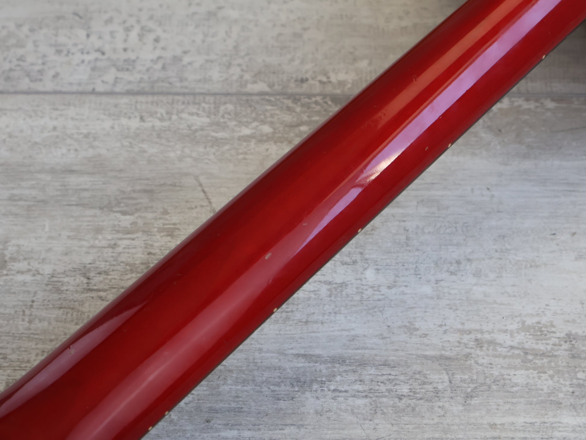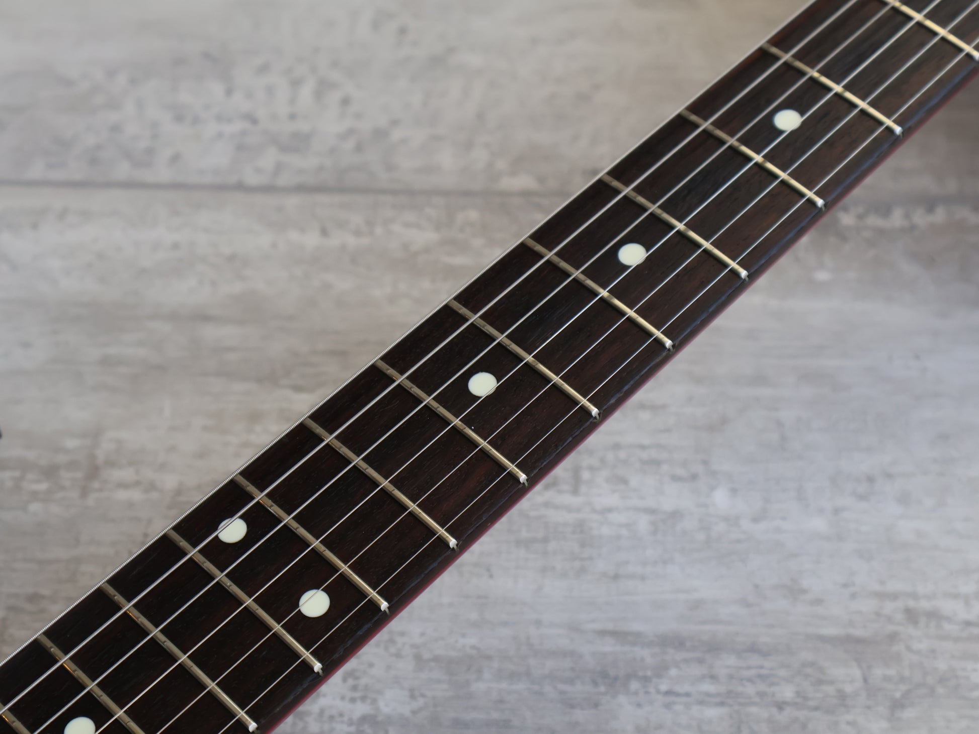 This one is perfect if you like red and a little bit of gold. If you don't then sorry. Trans red finish on a two-piece ash body, trans red maple neck with a nice V profile, 22 fret rosewood fingerboard, weighs 3.5kg's. Loaded with three Bill Lawrence single coils that sound perfect for the guitar, the only thing that's not original is the pickguard/knob combo as the original gold one cracked.