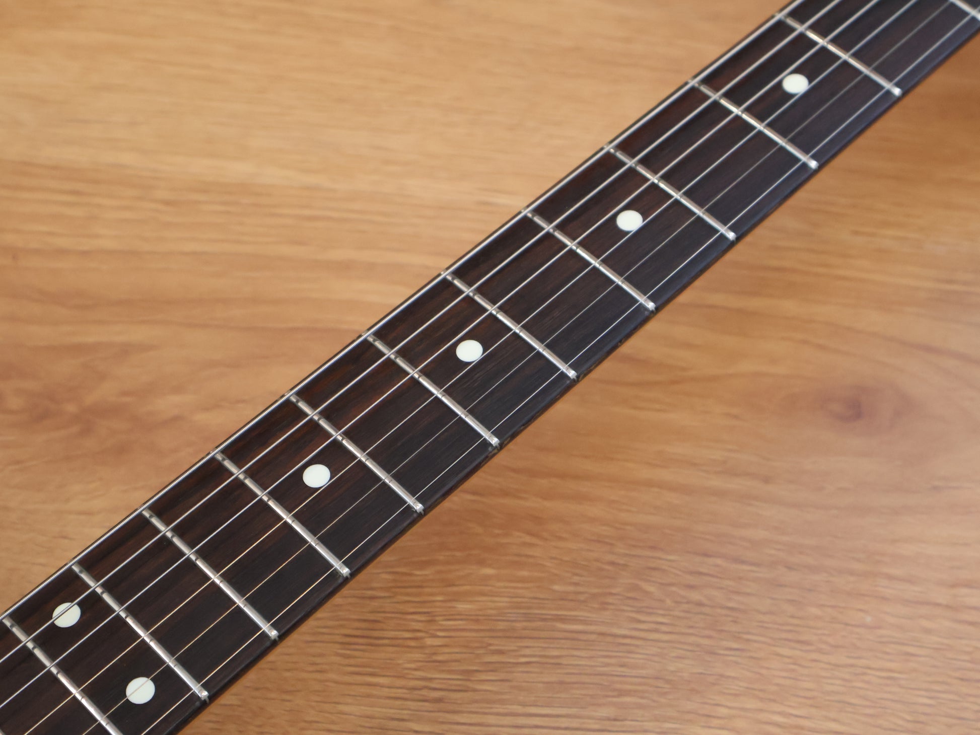 This one is inspired by the Fender '62 model Stratocaster with an ash body, maple neck (with a light V profile) and 21 fret rosewood fingerboard, it weighs 3.8kg's. Loaded with a set of original Bill Lawrence L250 single coils and an aftermarket L500 humbucker in the bridge, it appears to be otherwise all original.