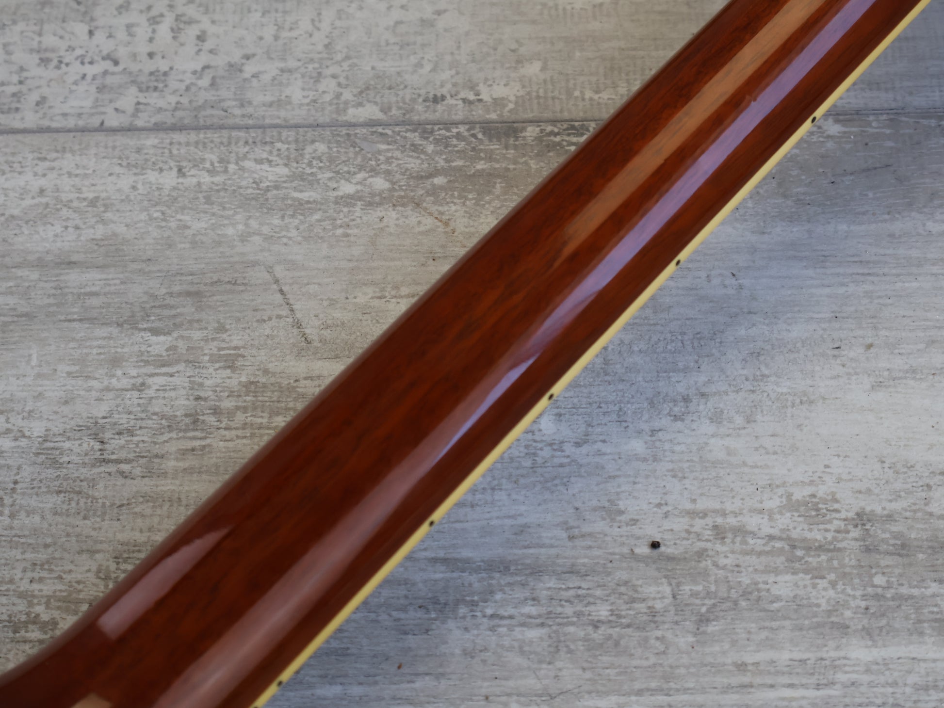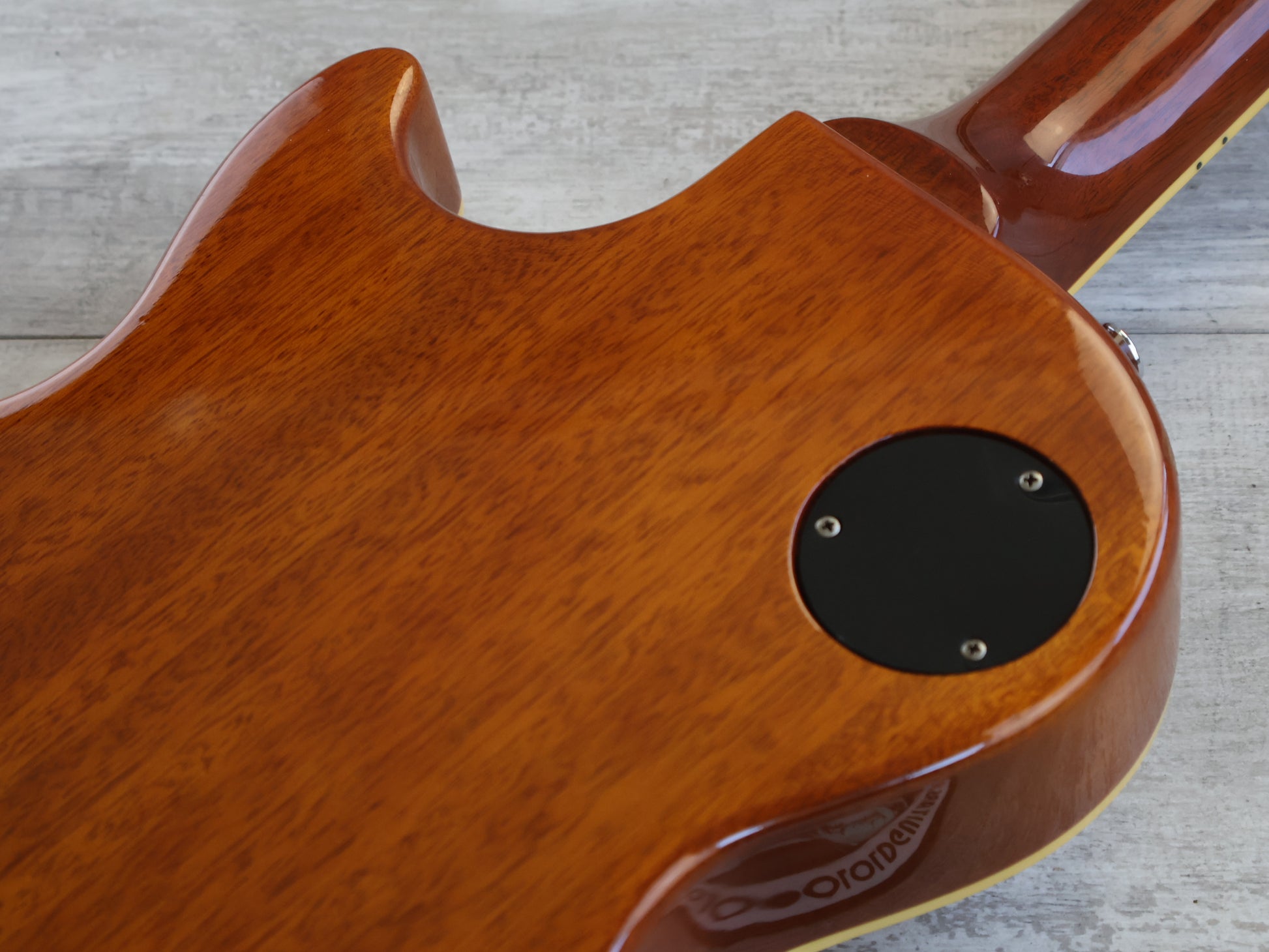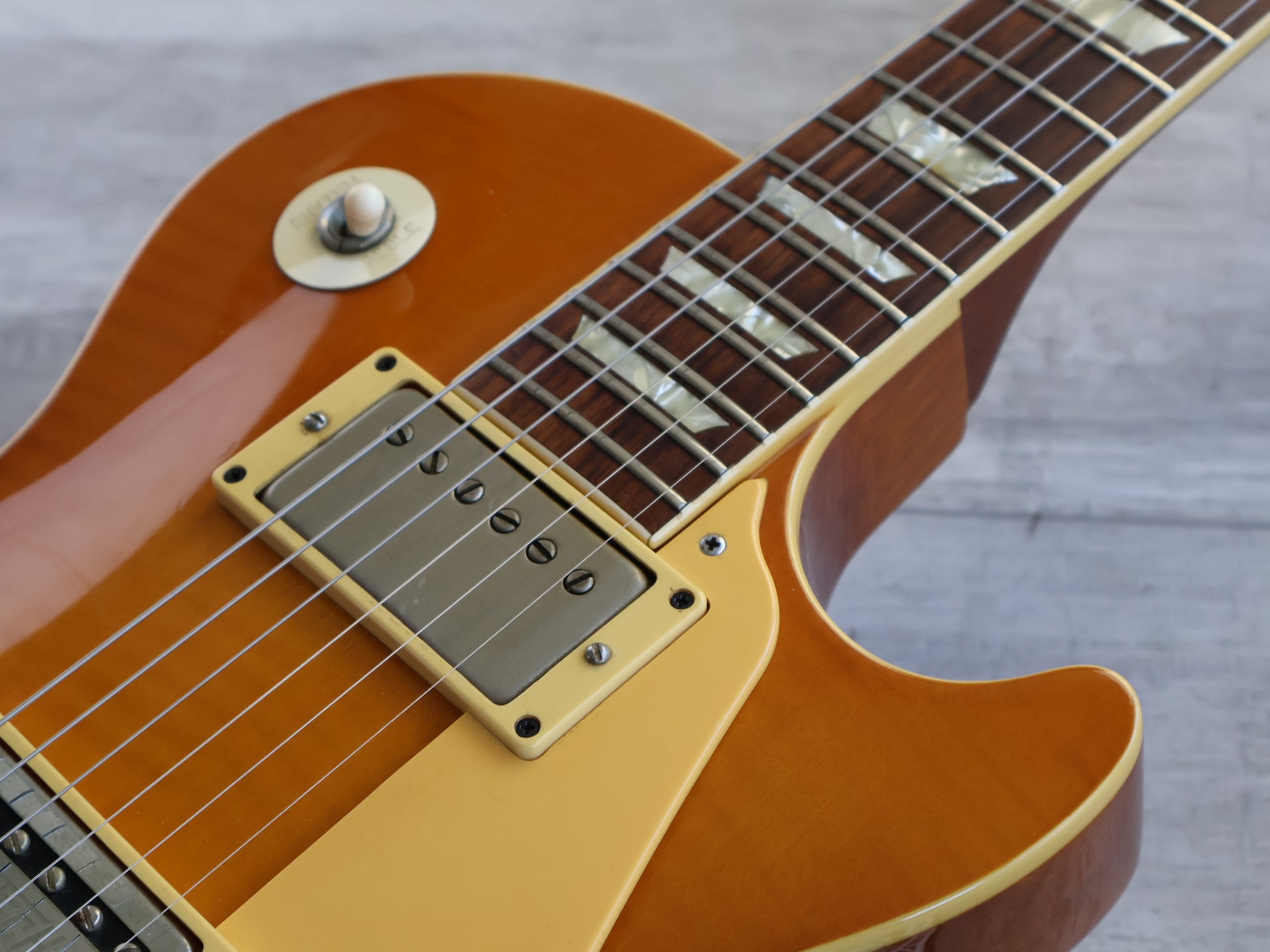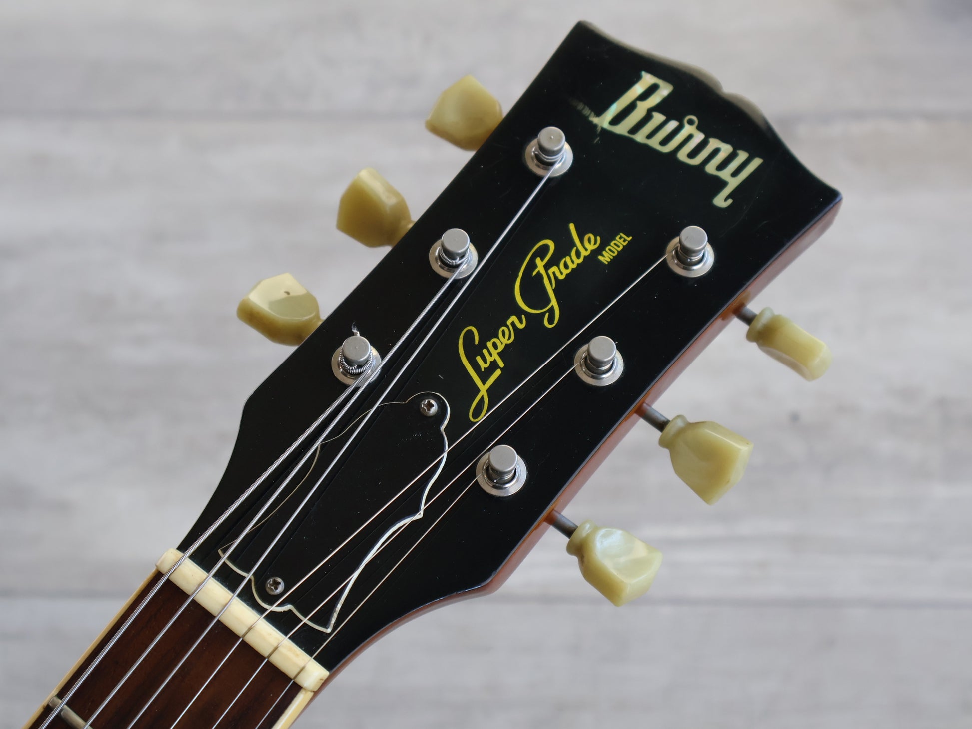 Made in Japan in 1989, the RLG-50 was Burny's classic Les Paul Standard model. Laminate flame with a "Cherry Old Sunburst" finish on a solid mahogany body, maple top and slim 60's mahogany neck, it weighs 3.8kg's. Loaded with the original VH humbucker in the neck and a Gretsch Broad'Tron in the bridge along with a set of replacement pots.
