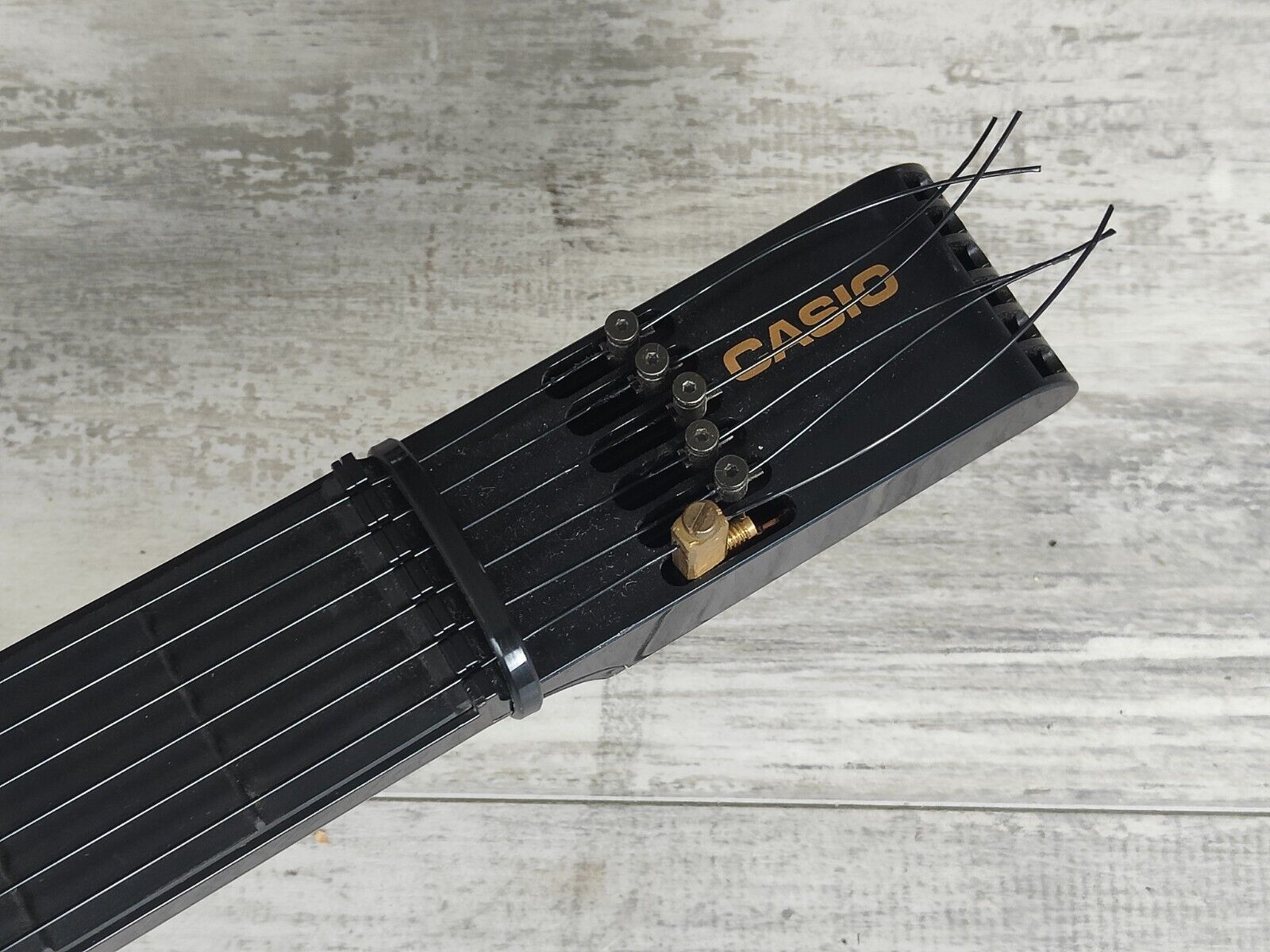 The Casio DG-20 was an "entirely new type of digital musical instrument which features the latest in state-of-the-art technology". Played with untuned nylon strings, the notes on the fretboard correspond to that of a guitar in standard tuning so it's a breeze to play. These are the MIDI functional models!