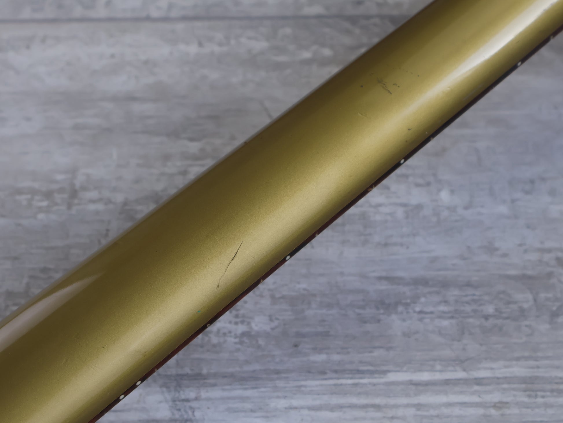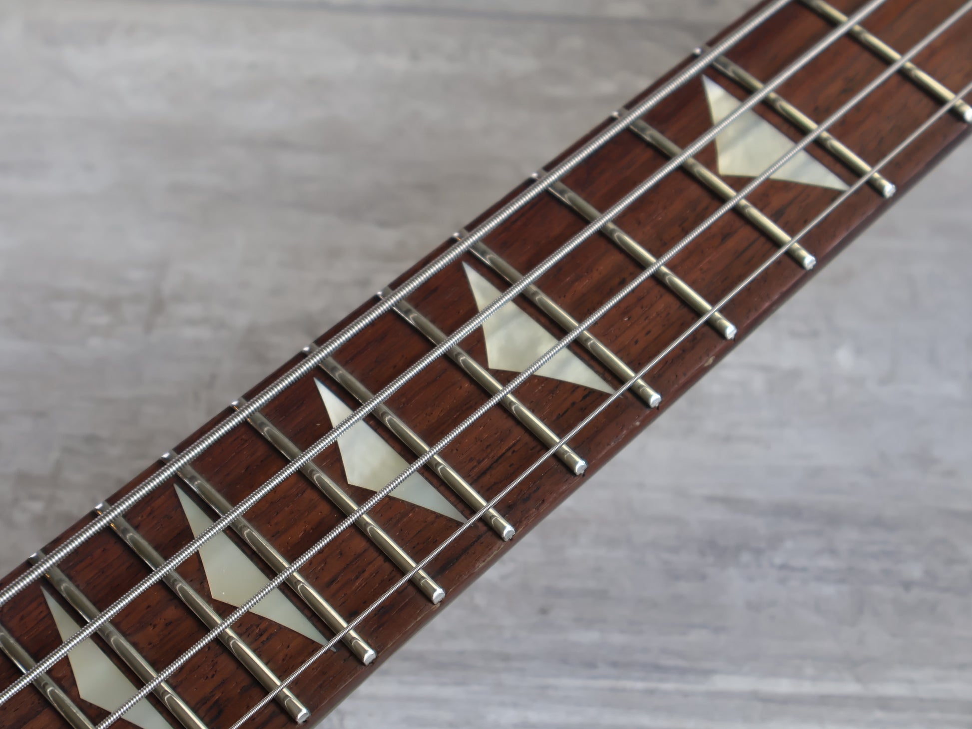 Made in Japan in the 1980's, this is seemingly a custom order bass from ESP's Tokyo workshop (with "MISUZU" on the 24th fret inlay). Neckthrough construction with a metallic gold finish, it features a 32" scale length rosewood fingerboard and weighs 3.6kg's. Loaded with "always on" PJ pickups controlled by a master tone control.