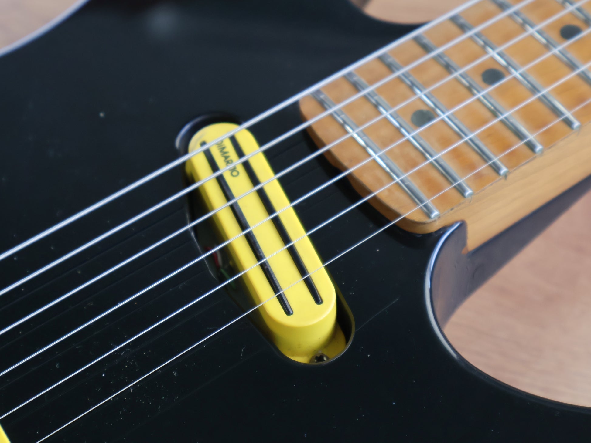 Solid alder body with a "Square Edge" (Dinky style) shape bolted to a lightly glossy maple neck with a 22 fret maple fingerboard and the highly desirable Fender style headstock, it weighs 3.6kg's. Loaded with a Dimarzio Hot Rail in the neck and a FRED in the bridge position controlled by a 3-way blade selector and master volume/tone controls with a coil split push pull pot.