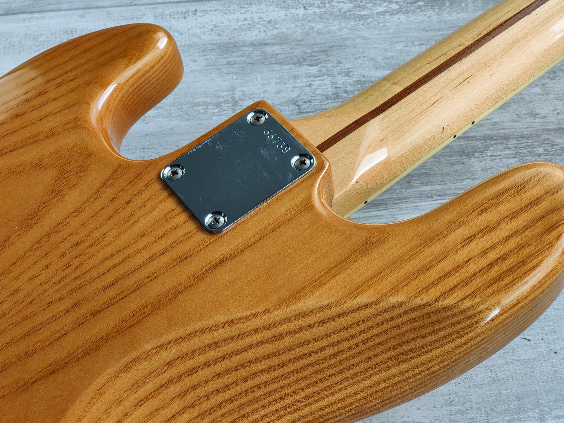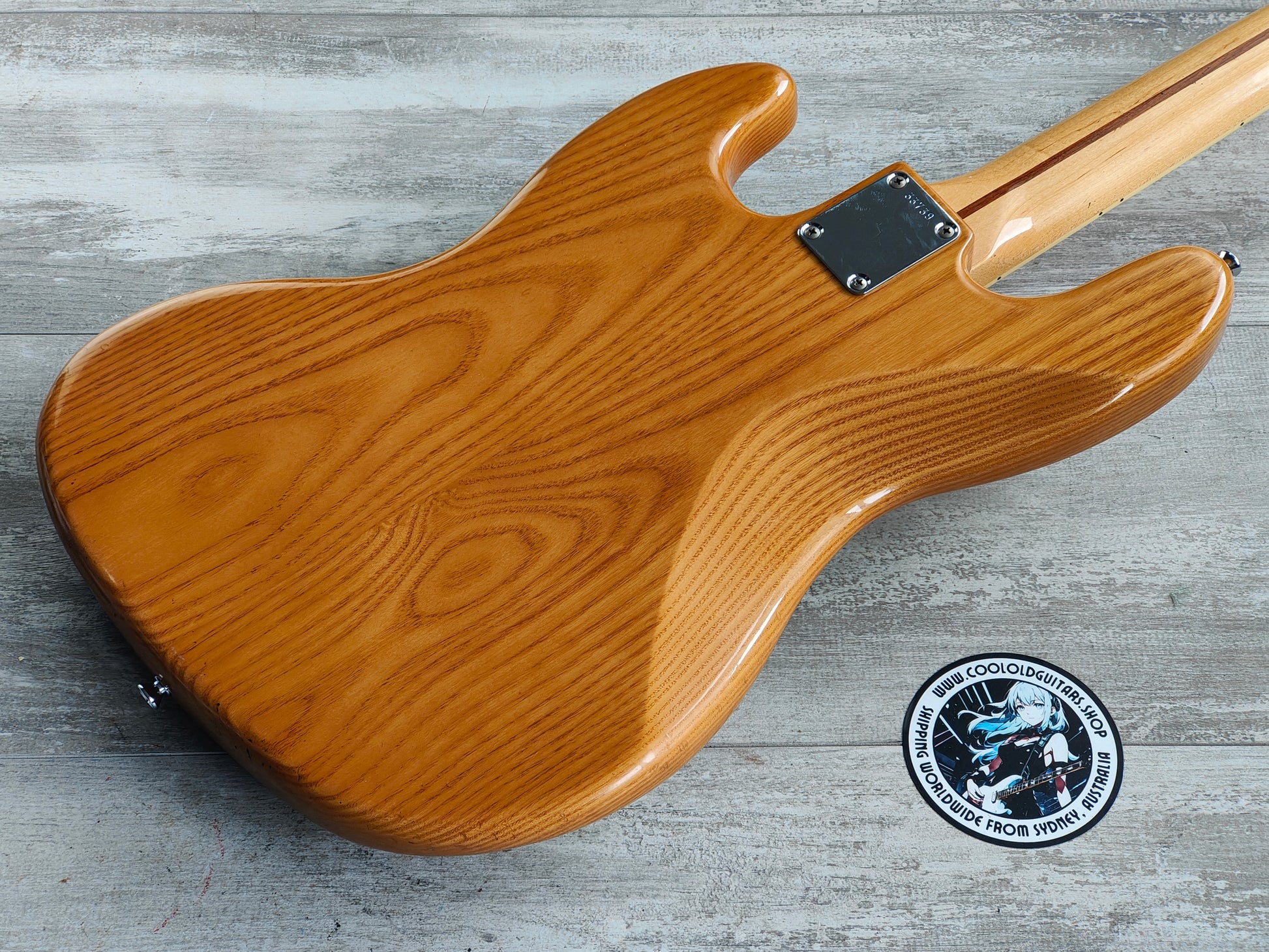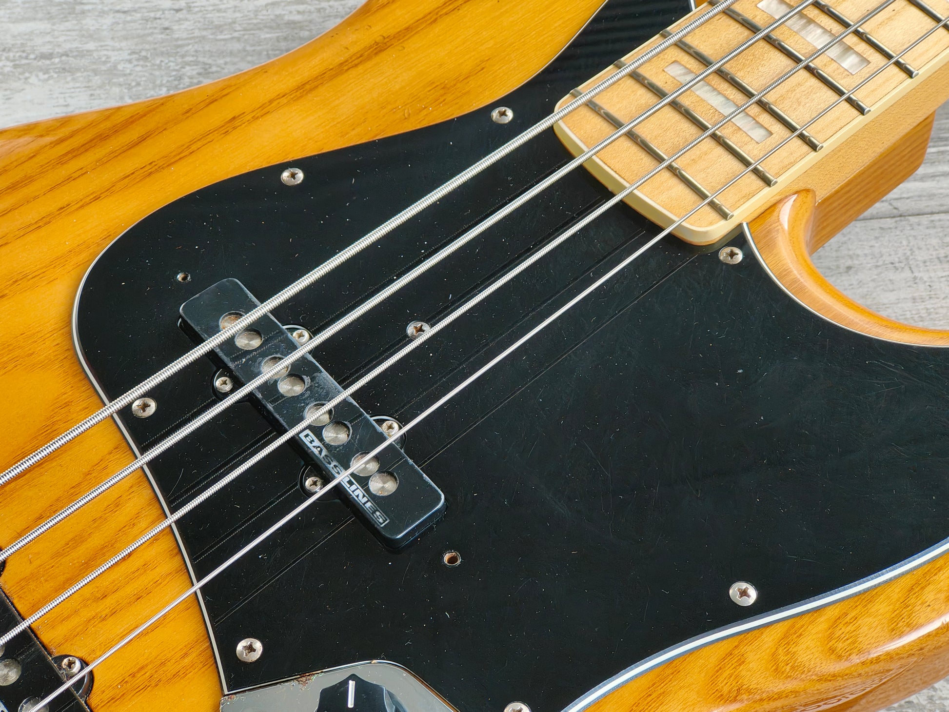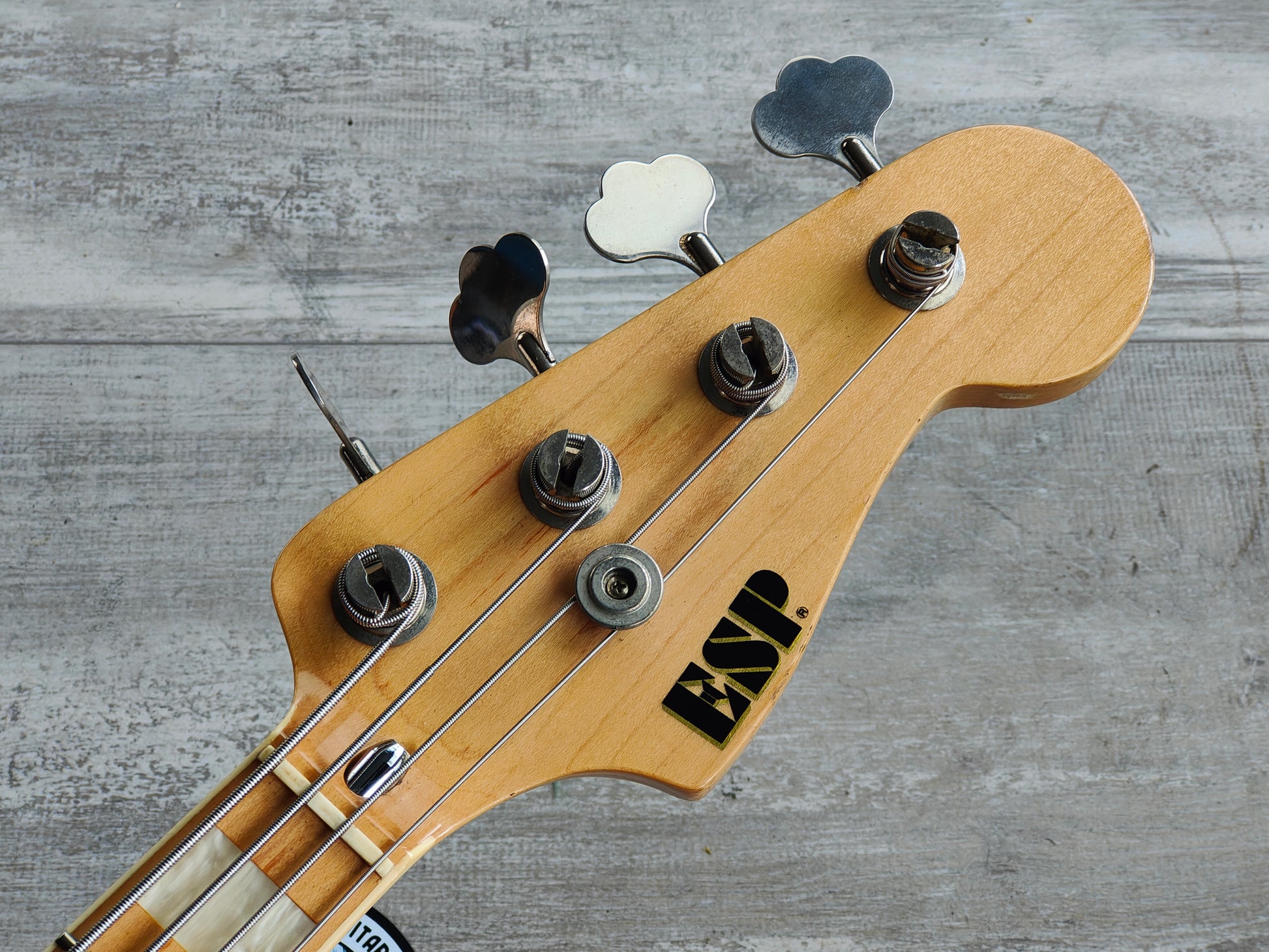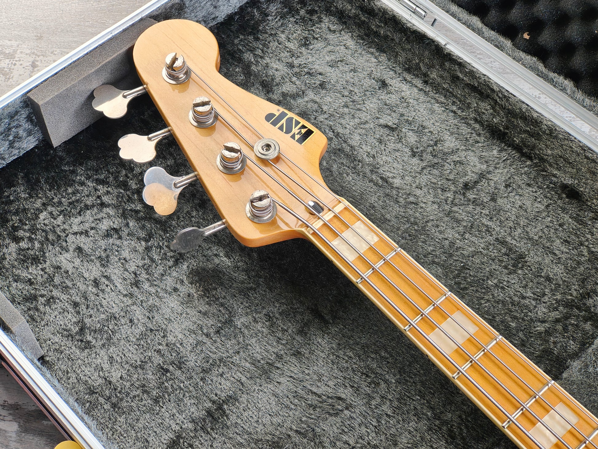 Seemingly a custom order placed with ESP's Japanese factory from the 1980's. A nice two piece ash body with a thin lacquer finish bolted to a bound maple neck with block inlays (39mm nut width, 22 frets, 34" scale length), it weighs 4.8kg's. Loaded with a pair of Basslines pickups as pictured with full sized pots, looks like it could be all original.