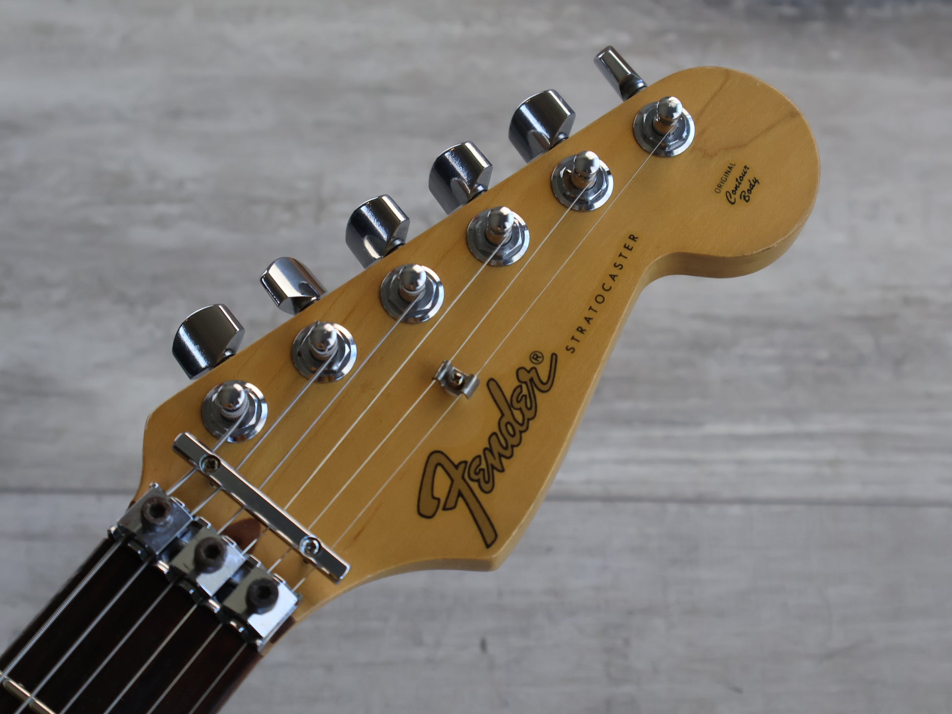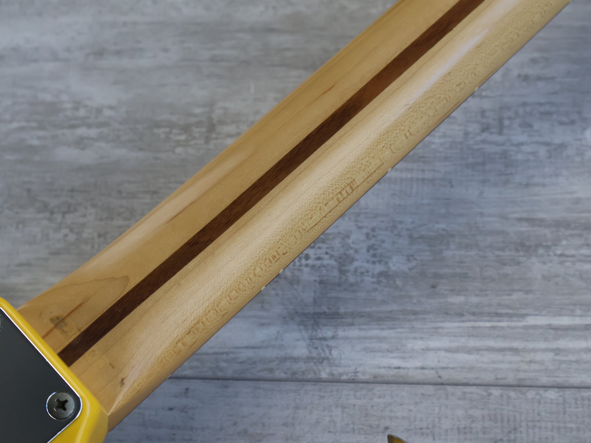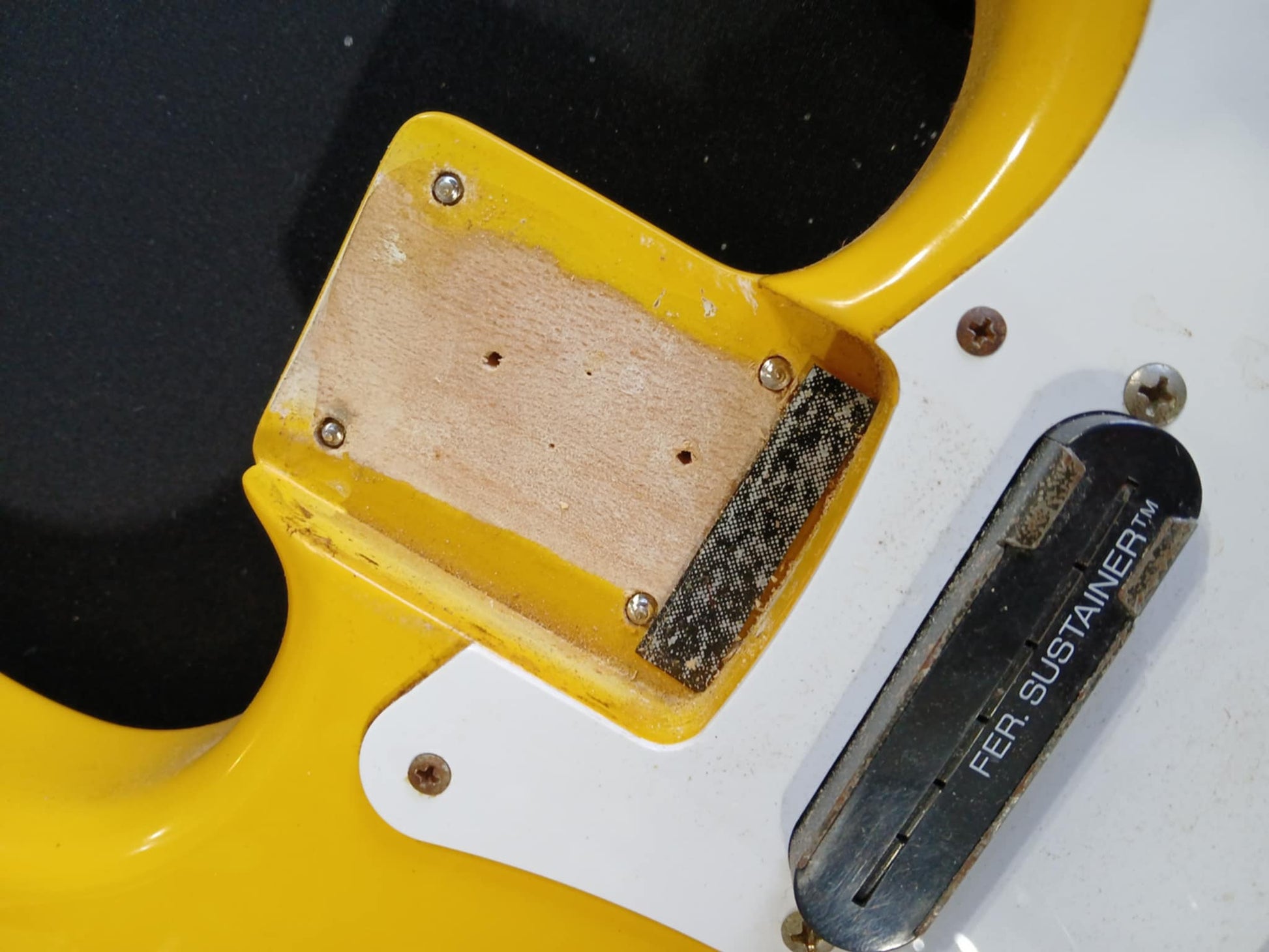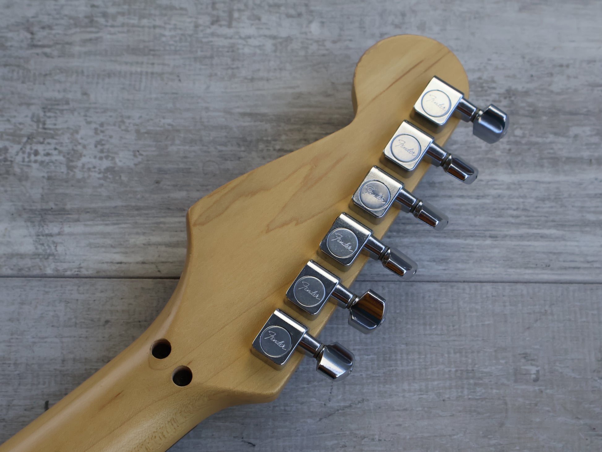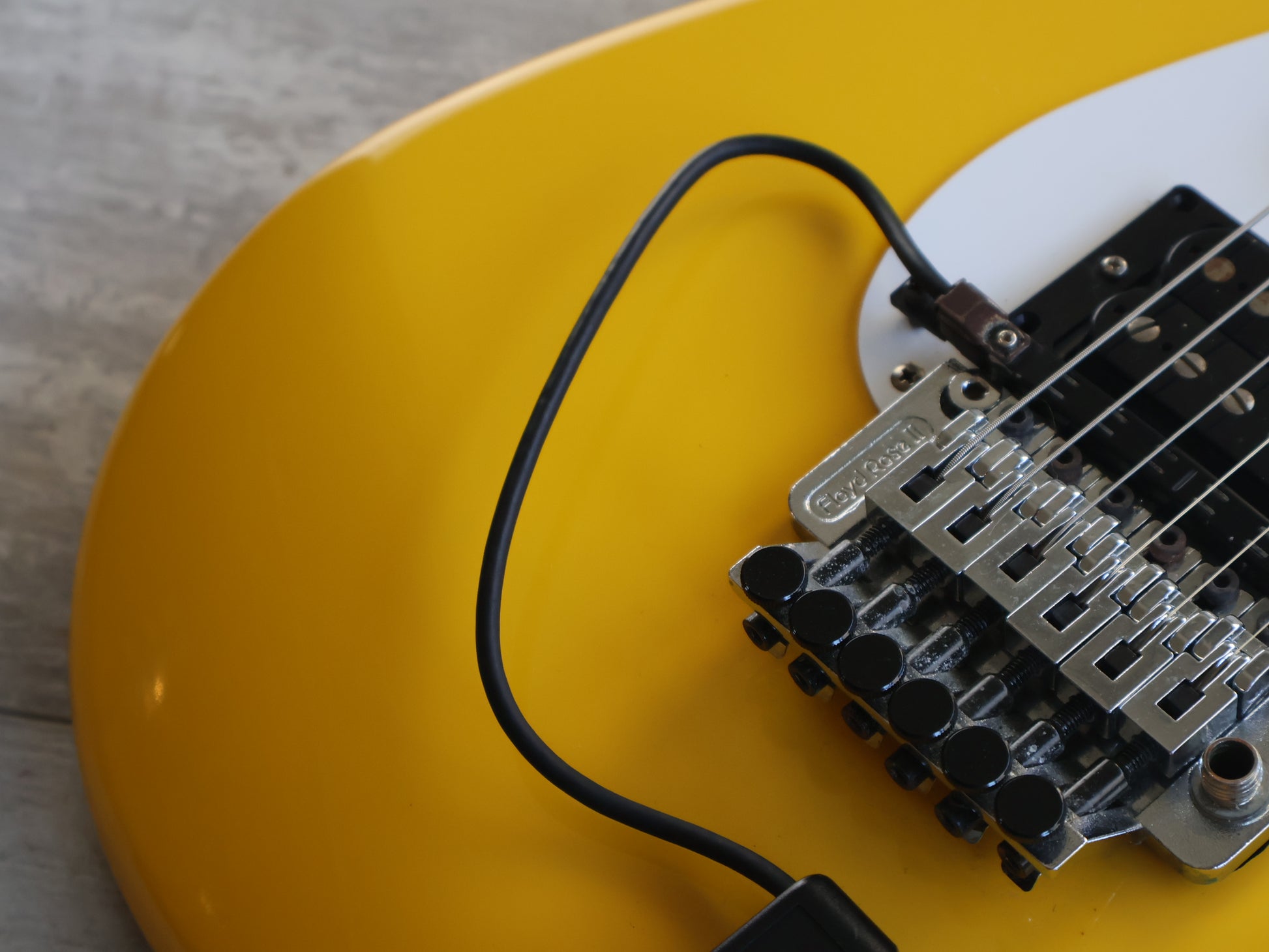 Looks to have a Fender USA neck (with a desirable Herb Gastelum stamp on the heel) from the 1990's on a matching Fender USA Graffiti Yellow body (no stamps), it weighs 4kg's. Loaded with a Floyd Rose II tremolo, Fender enclosed tuners, a Fernandes Sustainer neck pickup, a Seymour Duncan SSL-4 middle pickup and a Roland GK-2A synth pickup, all tested and working well.