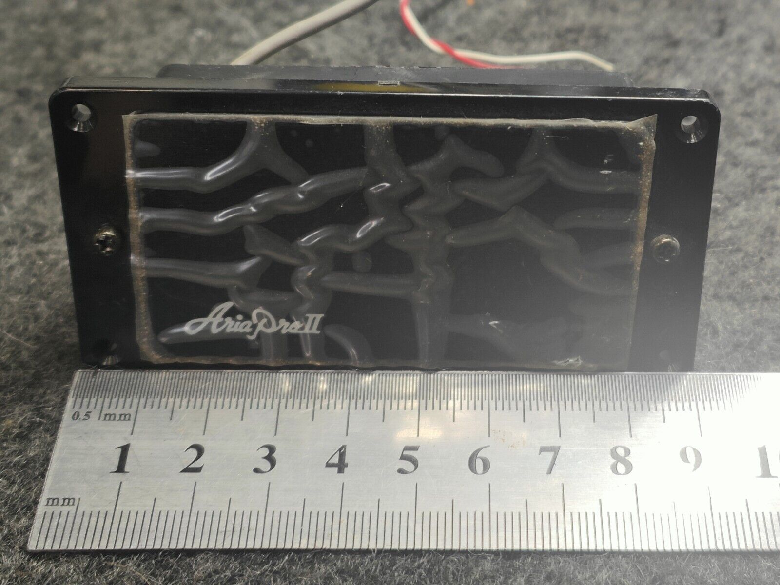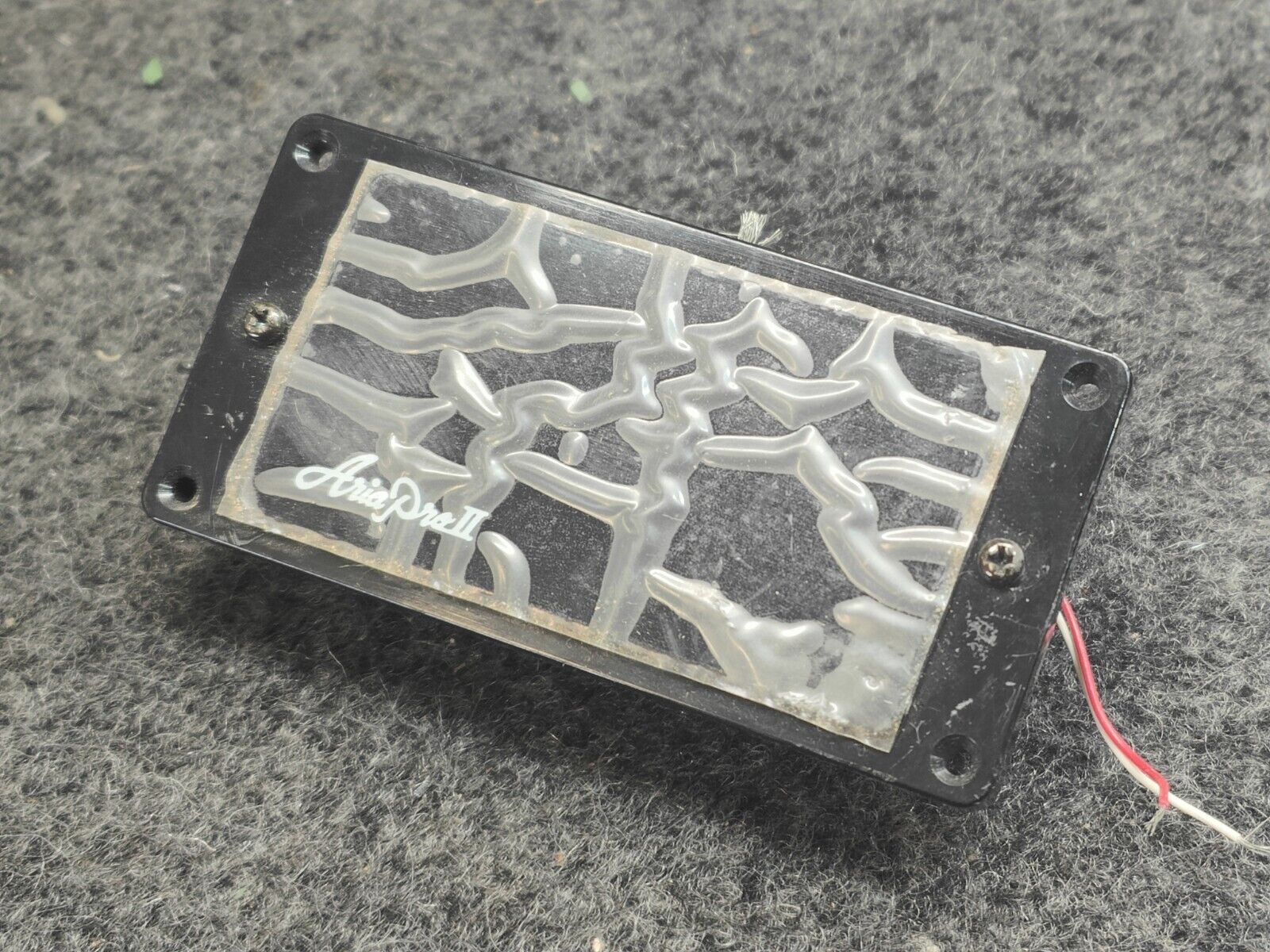 These Gotoh branded humbuckers feature the Aria Pro II branding on the covers and appear to likely be AH-1 models used in some of the shreddier guitars from the late 1980's. Not sure how Tokai ended up with them but they were likely assembling guitars for Aria Pro II after the Matsumoku factory closed. They include the pickup ring and mounting springs/screws but no screws to mount the ring to the body. Please check the pics for dimensions and multi-meter readings.