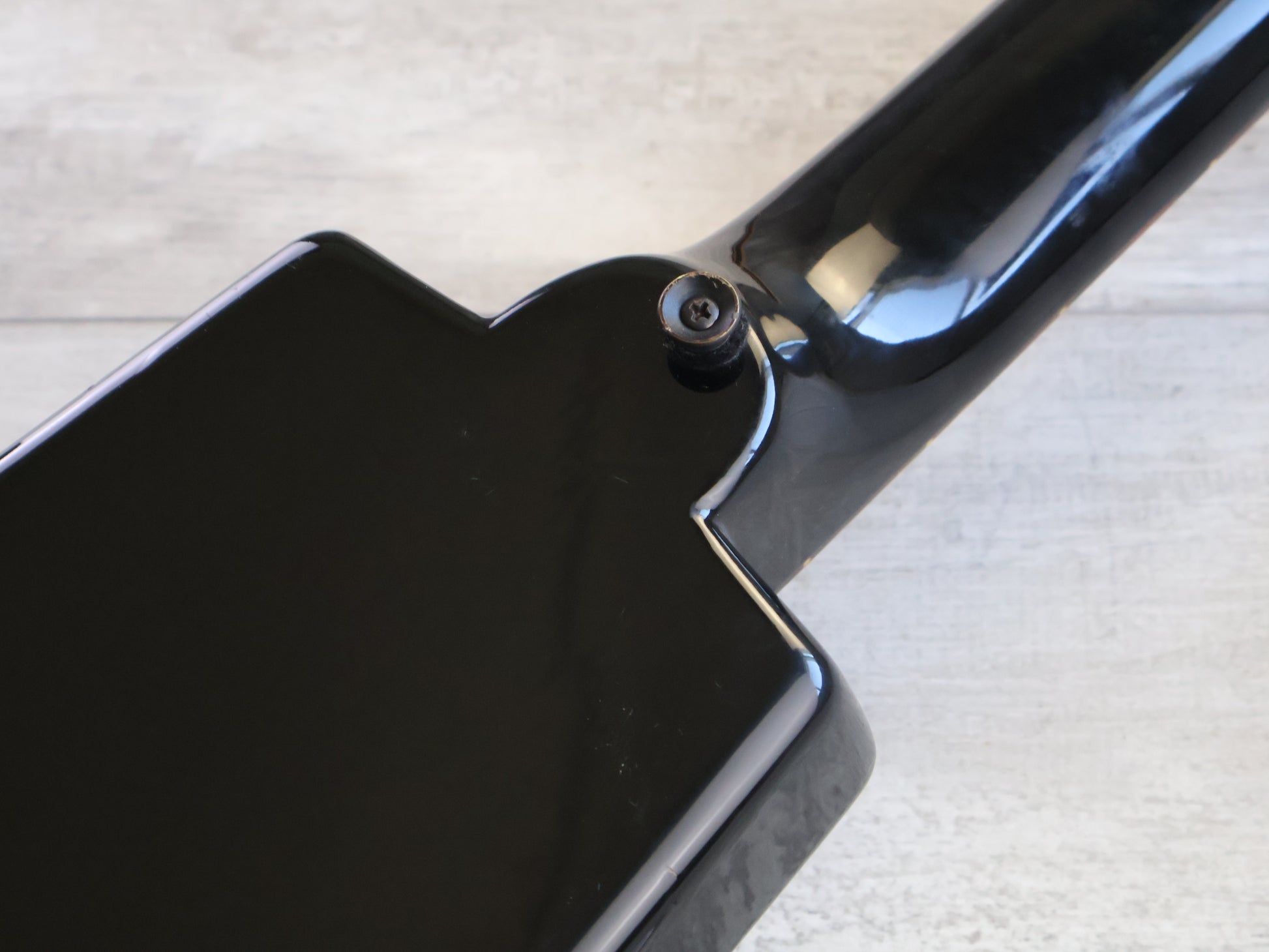 The infamous "Paddle Bass" from Hohner, made in Japan in the late 1980's. This is the "B2" model with passive electronics (two bass humbuckers, volume, tone and pickup balance). Set neck construction with the flip-out leg rest for seated playing, weighs just over 3kg's.
