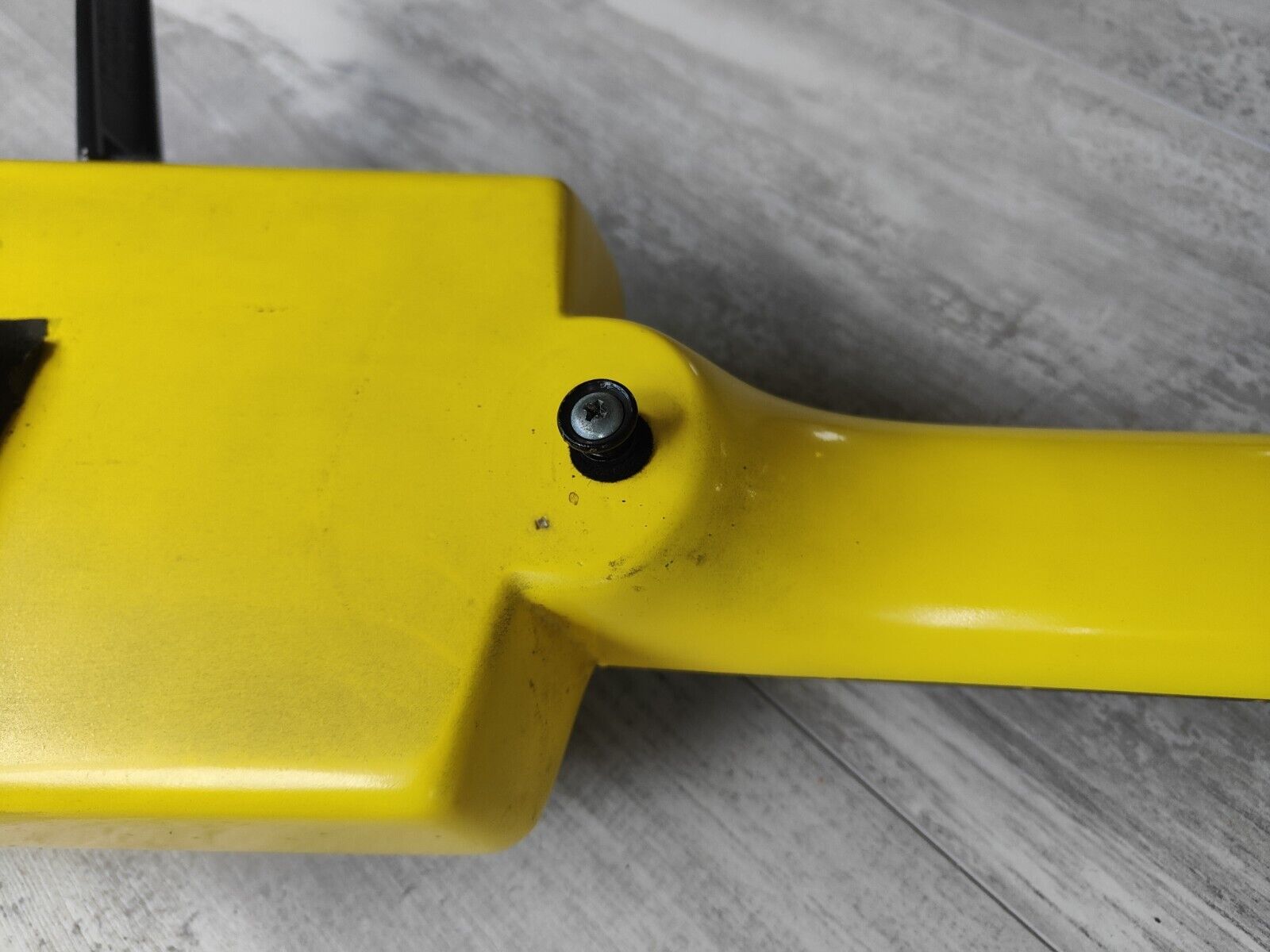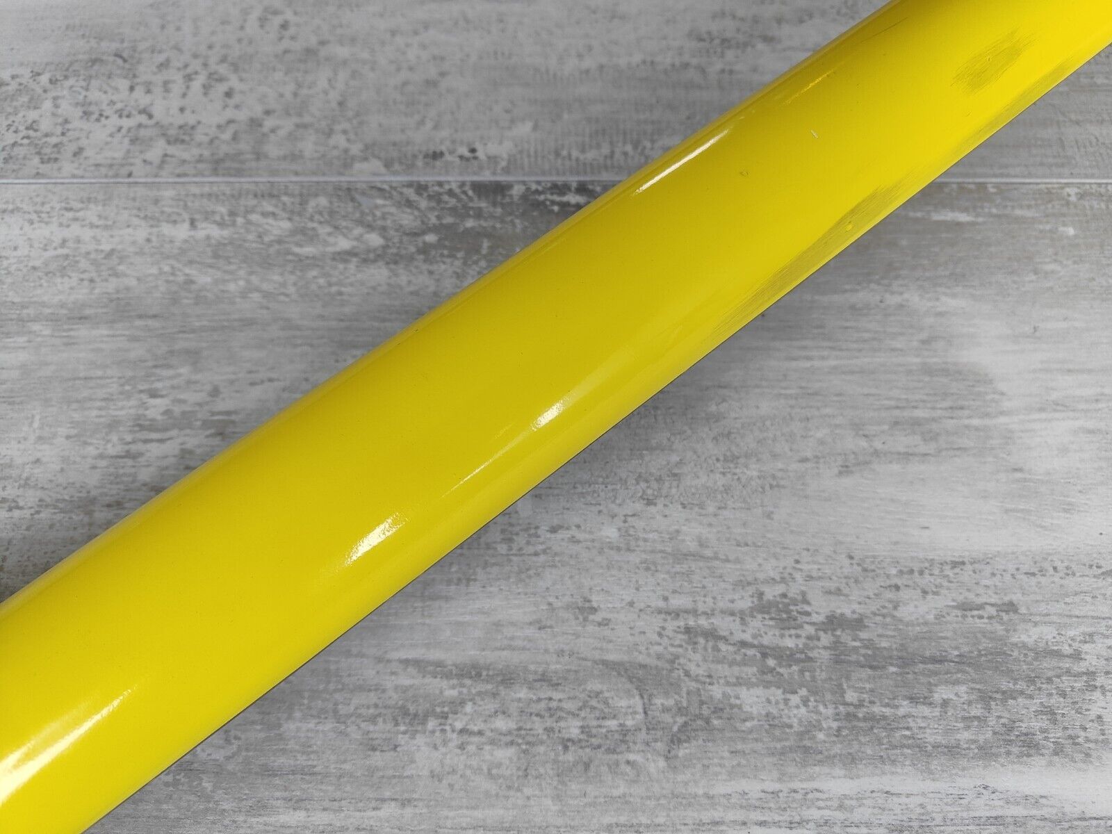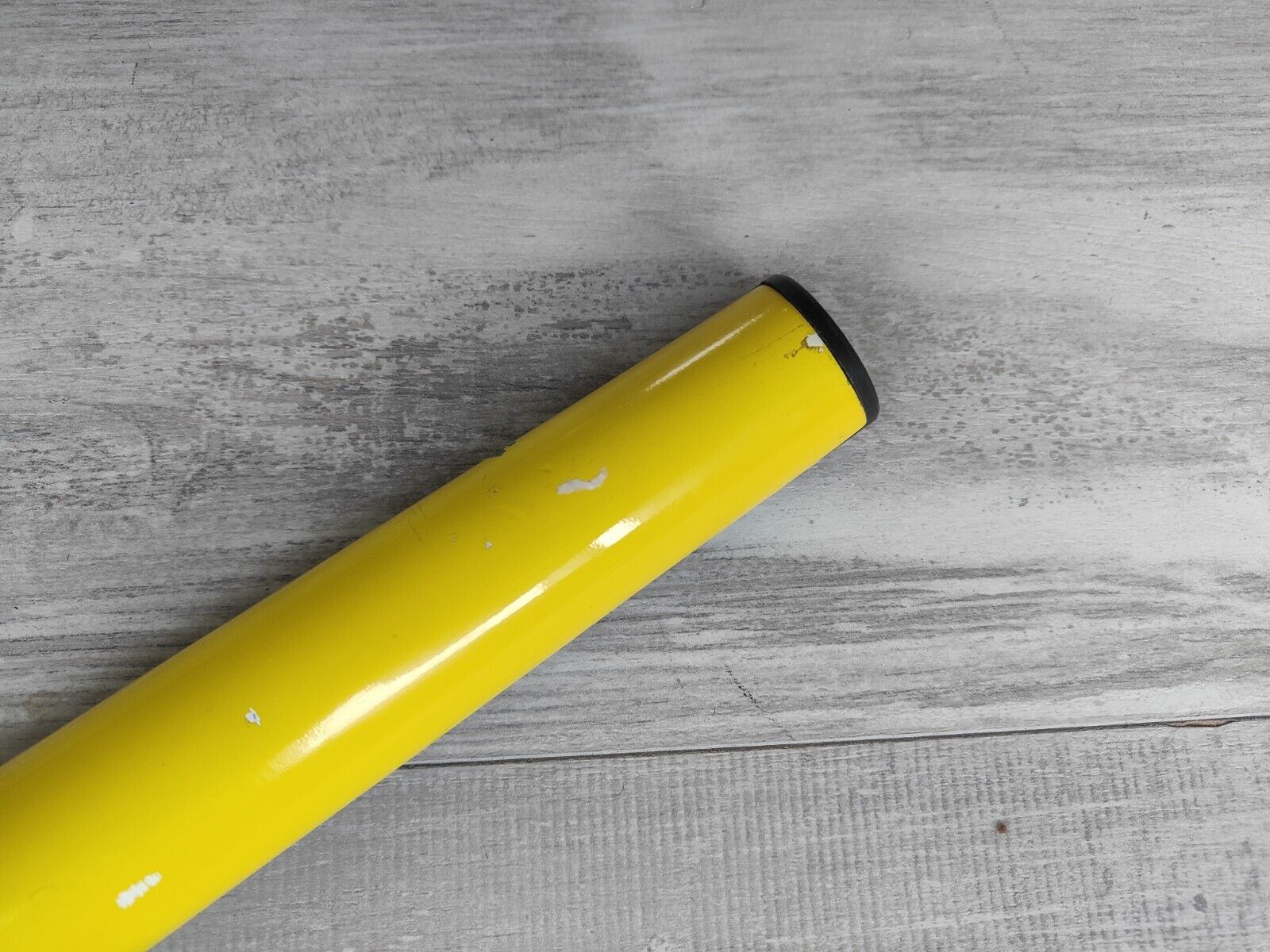 Previous owner painted it yellow, pretty average job but it looks nice from a distance. Slight damage on the top around the volume knob otherwise it appears structurally sound. Plays and sounds as it should!