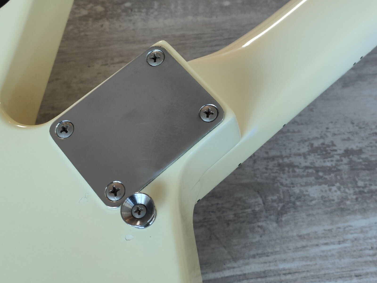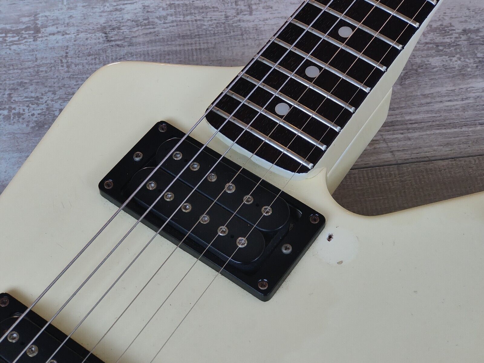 Looks to be made in Japan in the late 1980's (based on the specs, hardware and pickups) however it's got no stamps or branding anywhere inside or out. Solid body with a maple neck and 22 fret fingerboard (648mm scale length), weighs 3.5kg's. Deluxe branded Gotoh tuners and a Japanese full sized pot (both commonly used by ESP and Tokai so i would suggest it's one of those at a guess) are the only real identifiable features. Pickups are Super Distortion-ish with no markings.