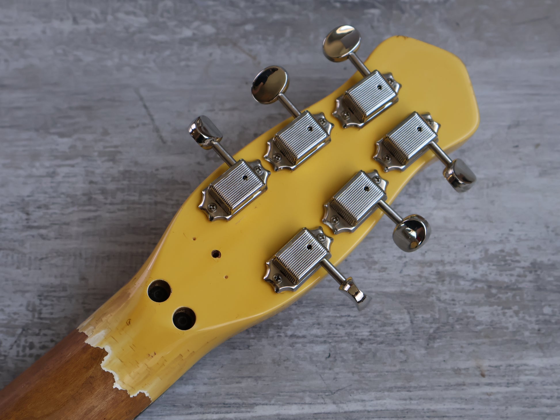 Assembled from parts, looks to be an ESP/Tokai body and everything else is generic/unbranded. Absolutely shreds and has vibes for days.