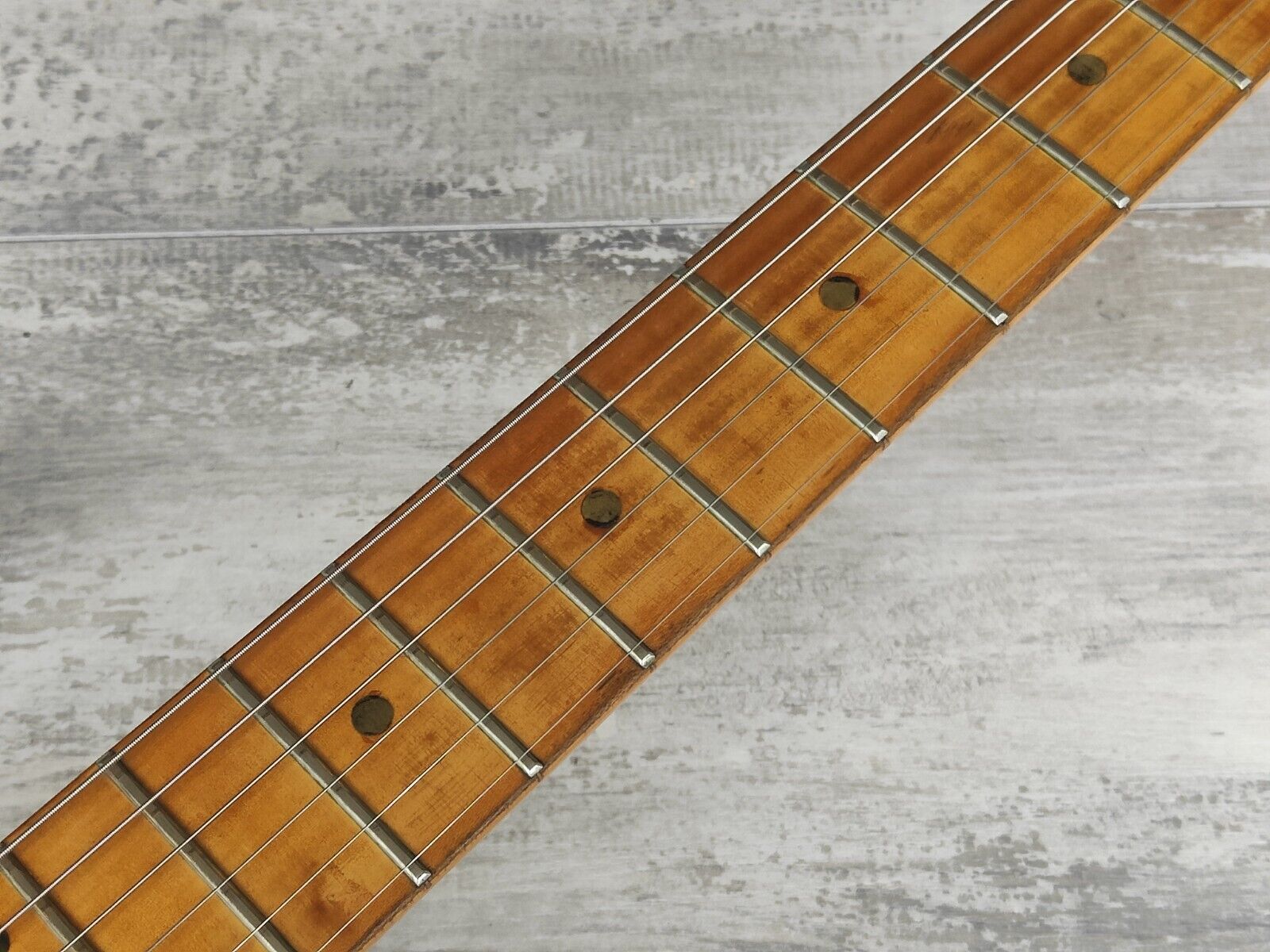 Good overall vintage condition as pictured with plenty of signs of playwear on the neck (understandably given how sick this thing is), given a professional setup and service prior to listing. Frets have life left and are shiny but have some wear to them, neck is straight and the truss works well.