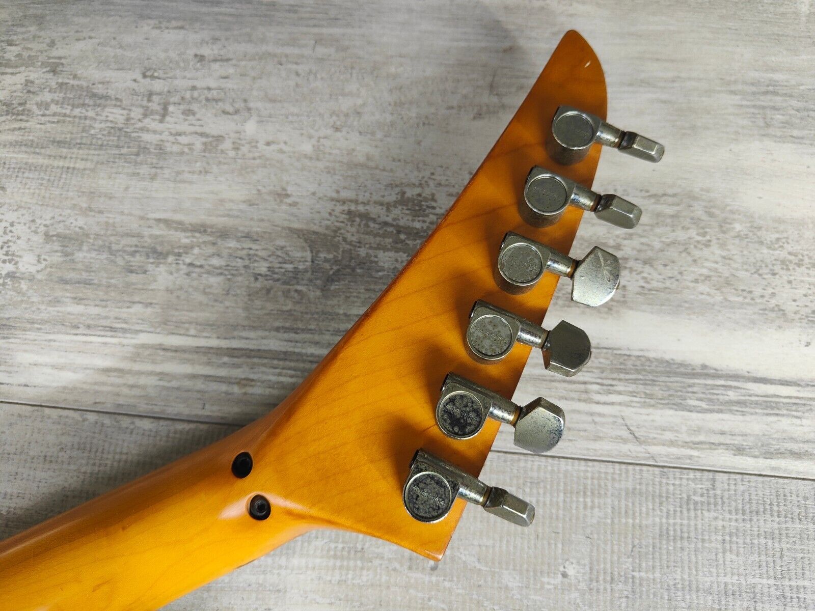 Korean made in the mid 1980's, the Kramer Striker 100ST was a budget friendly model that offered a Baretta style experience on a budget. Stratocaster style body with a 22 fret maple neck, it's loaded with a single humbucker/volume knob and a Floyd Rose II top mount tremolo system, weighs 3.8kg's.