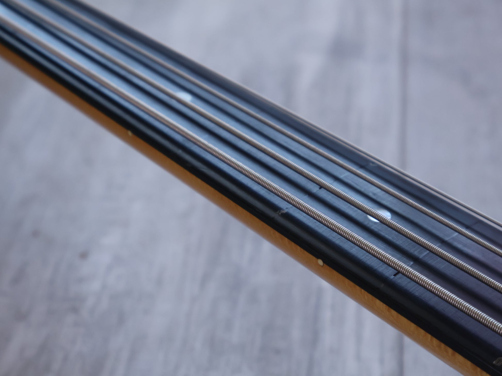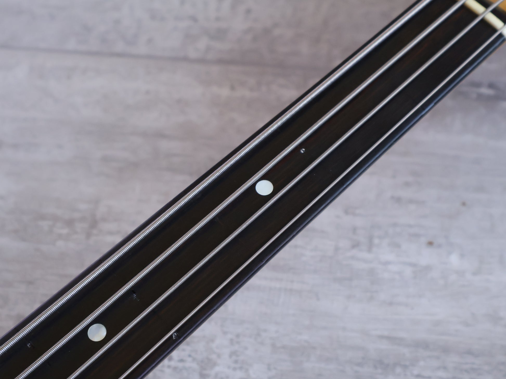 Given a basic setup and service prior to listing. The fretboard has fret slots if you want to convert it to a fretted bass, the board is clean and the neck is straight with an adjustable truss.