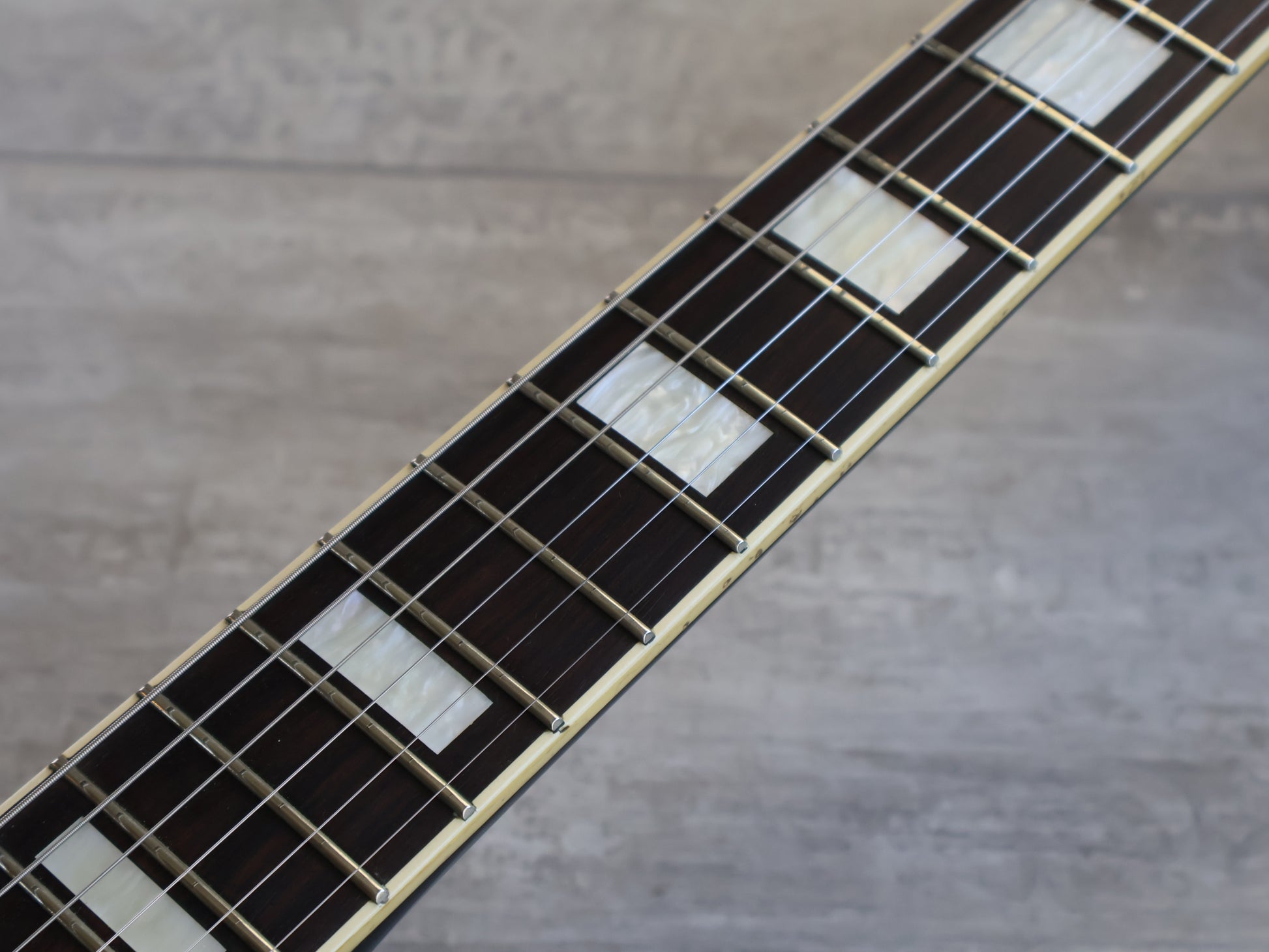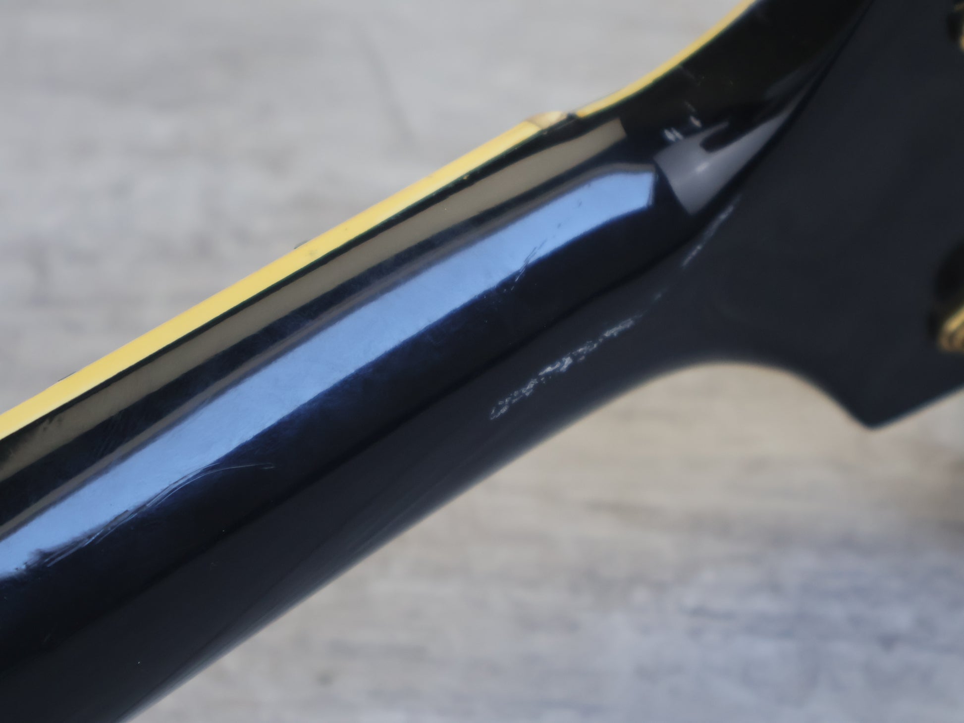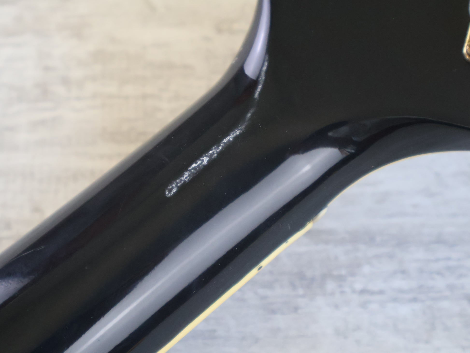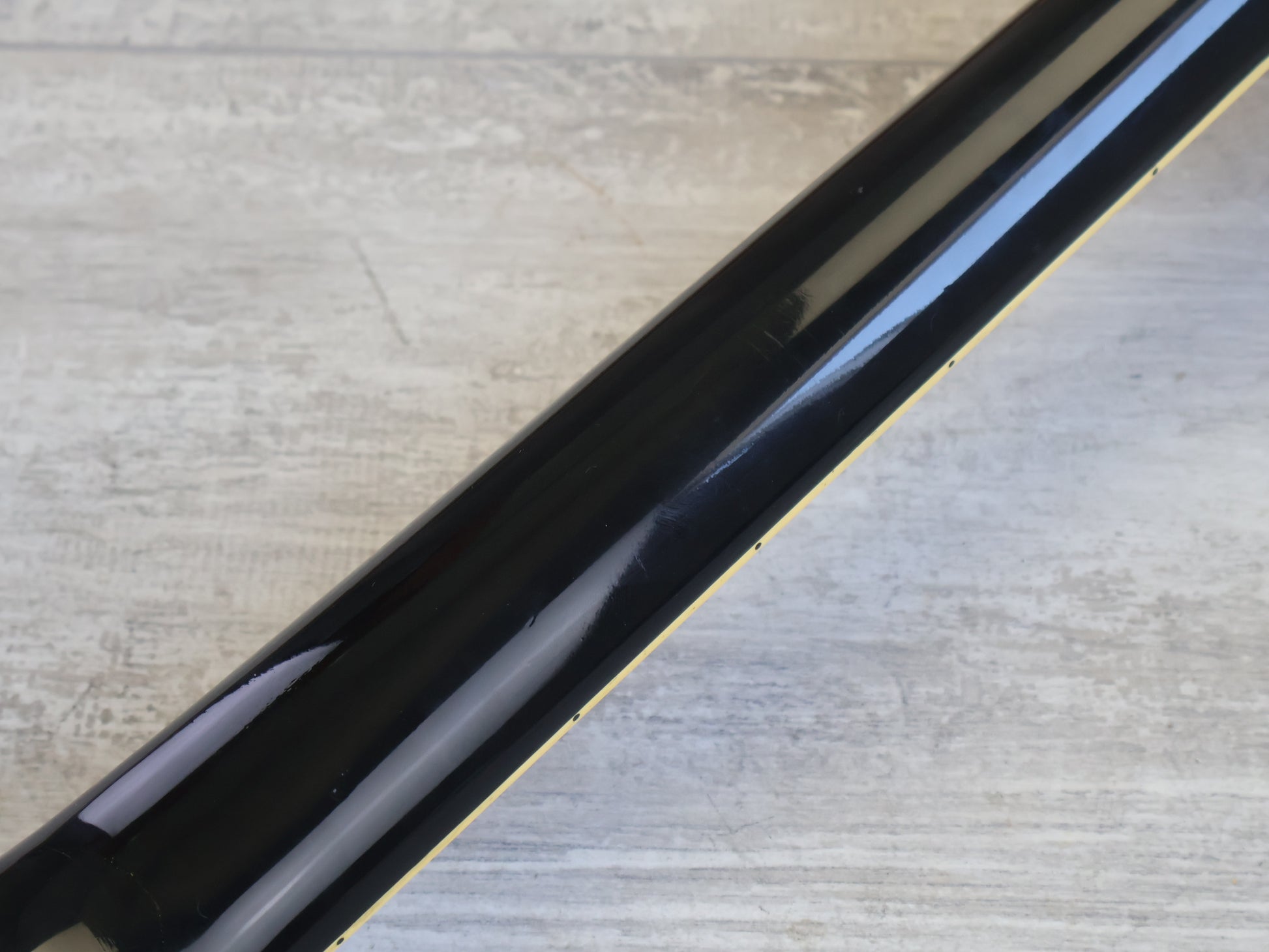 This guitar is in good overall condition with the only exception being a few small signs of sticker tan on the finish. The frets are shiny and smooth with plenty of life left, the neck is straight and the truss works as it should. There's a minor partial headstock repair that's been reglued and buffed smooth so it's barely noticeable in the hand.