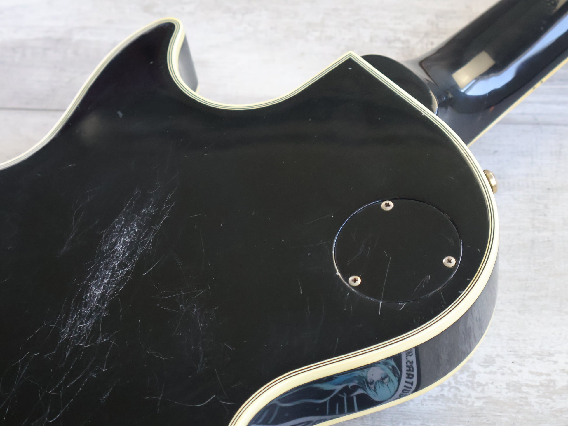 Made in Japan in the 1980's (serial number sticker missing), the LPC was one of the first true "Orville by Gibson" models and features a mahogany body with a solid maple top, a mahogany medium late 50's neck and a 22 fret rosewood fingerboard. Weighing in at 4.5kg's, it's loaded with some unbranded aftermarket pickups, full-sized Japanese pots and Gotoh hardware.