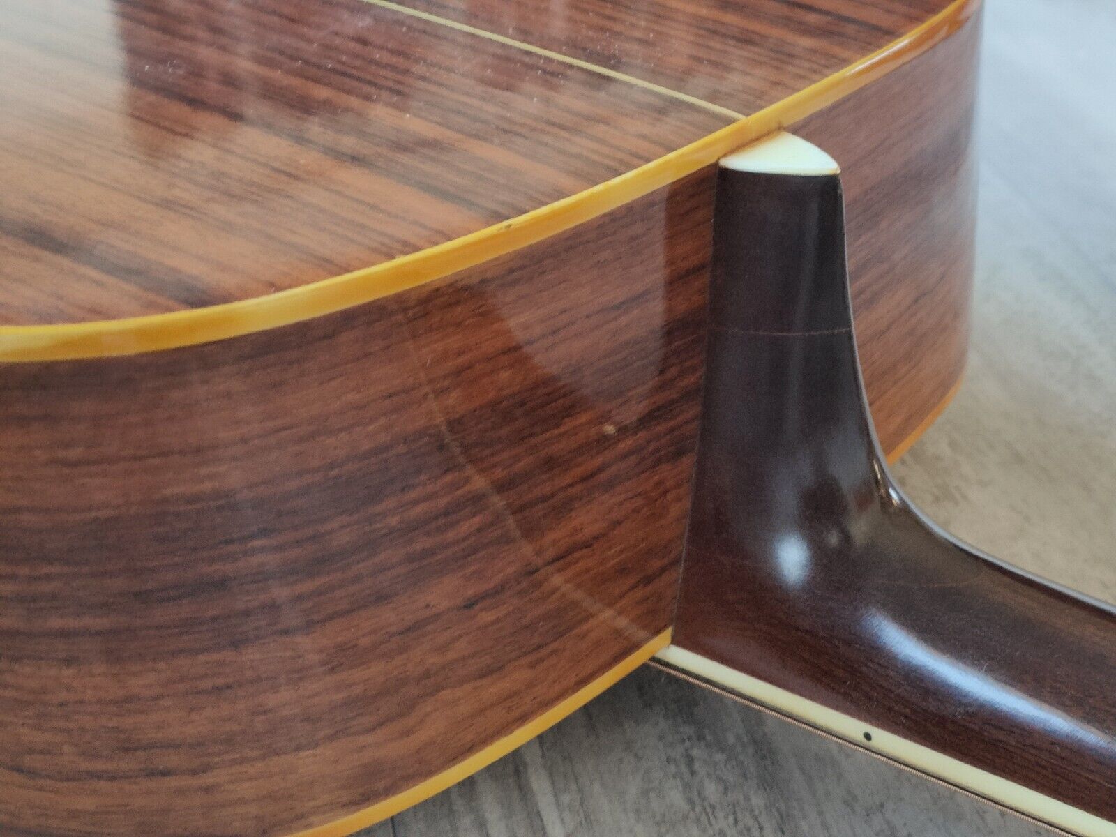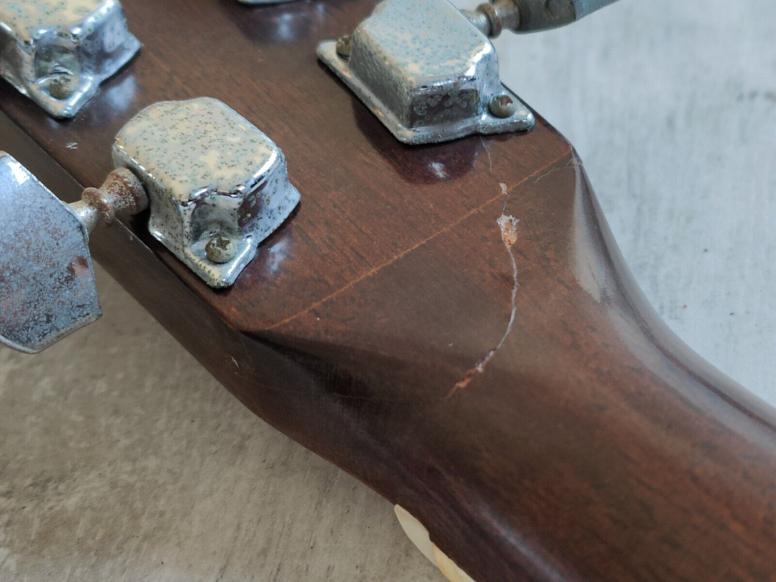 Good vintage condition with some dings and wear as pictured, frets are clean and play well, the neck is straight with a functional truss. Has had a headstock repair as pictured, it might look ugly but it's rock solid and was done professionally.