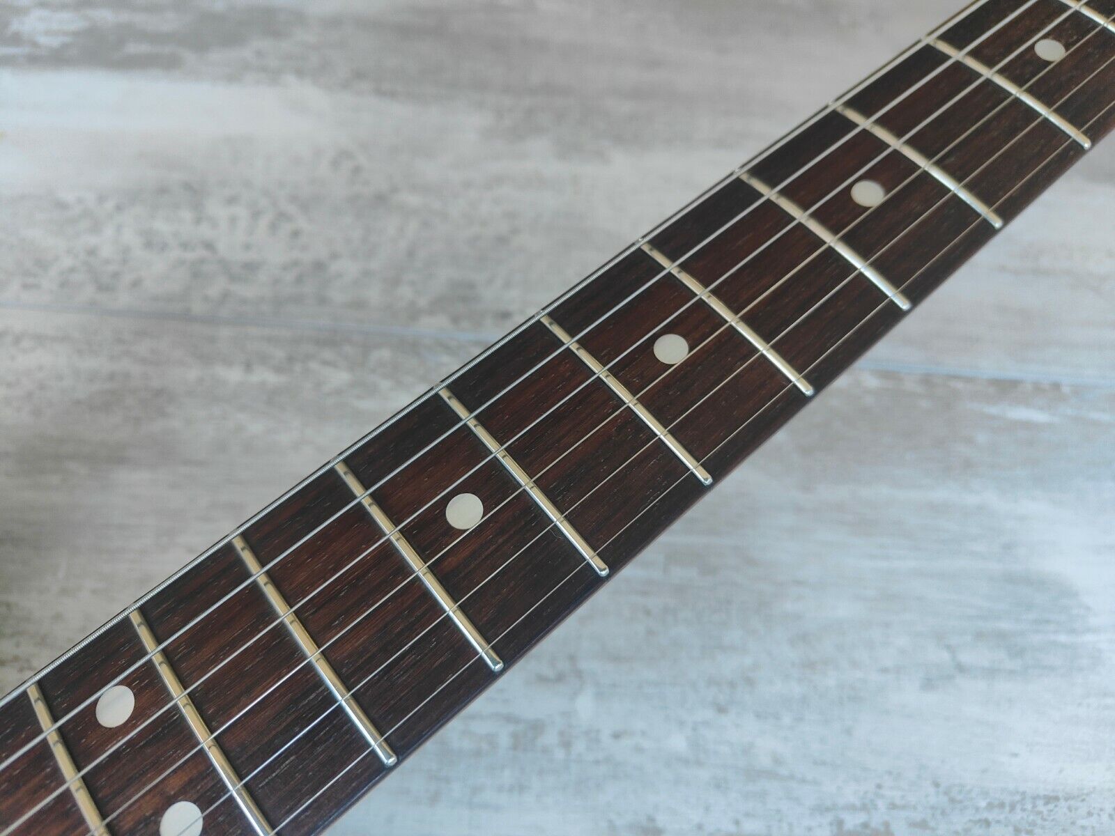 Something in between a Fender Stratocaster and a Jackson Dinky, this Tokai Custom Edition is a mid 80's superstrat made in their Hamamatsu factory. Alder body with a maple neck and 21 fret rosewood fingerboard, it weighs 3.3kg's.