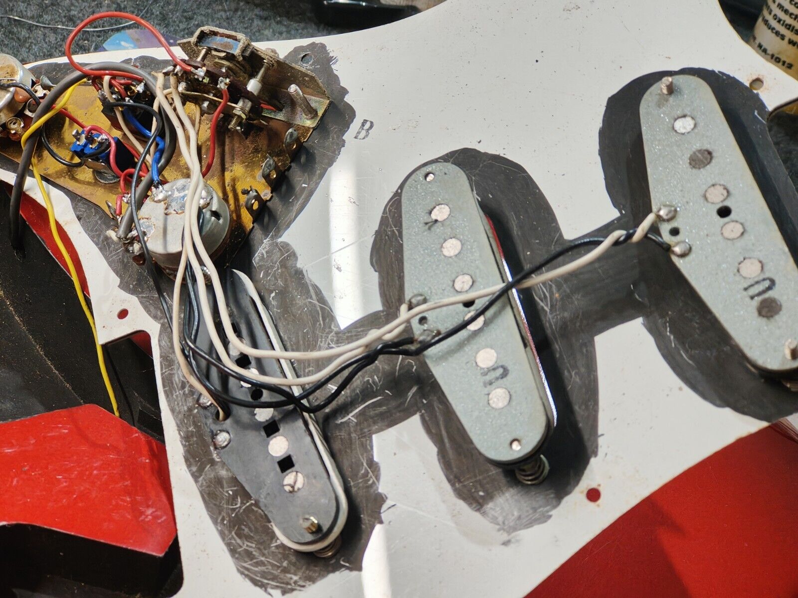 - Two Tokai U stamped grey-back alnico single coils and a Fender Japan alnico single coil.