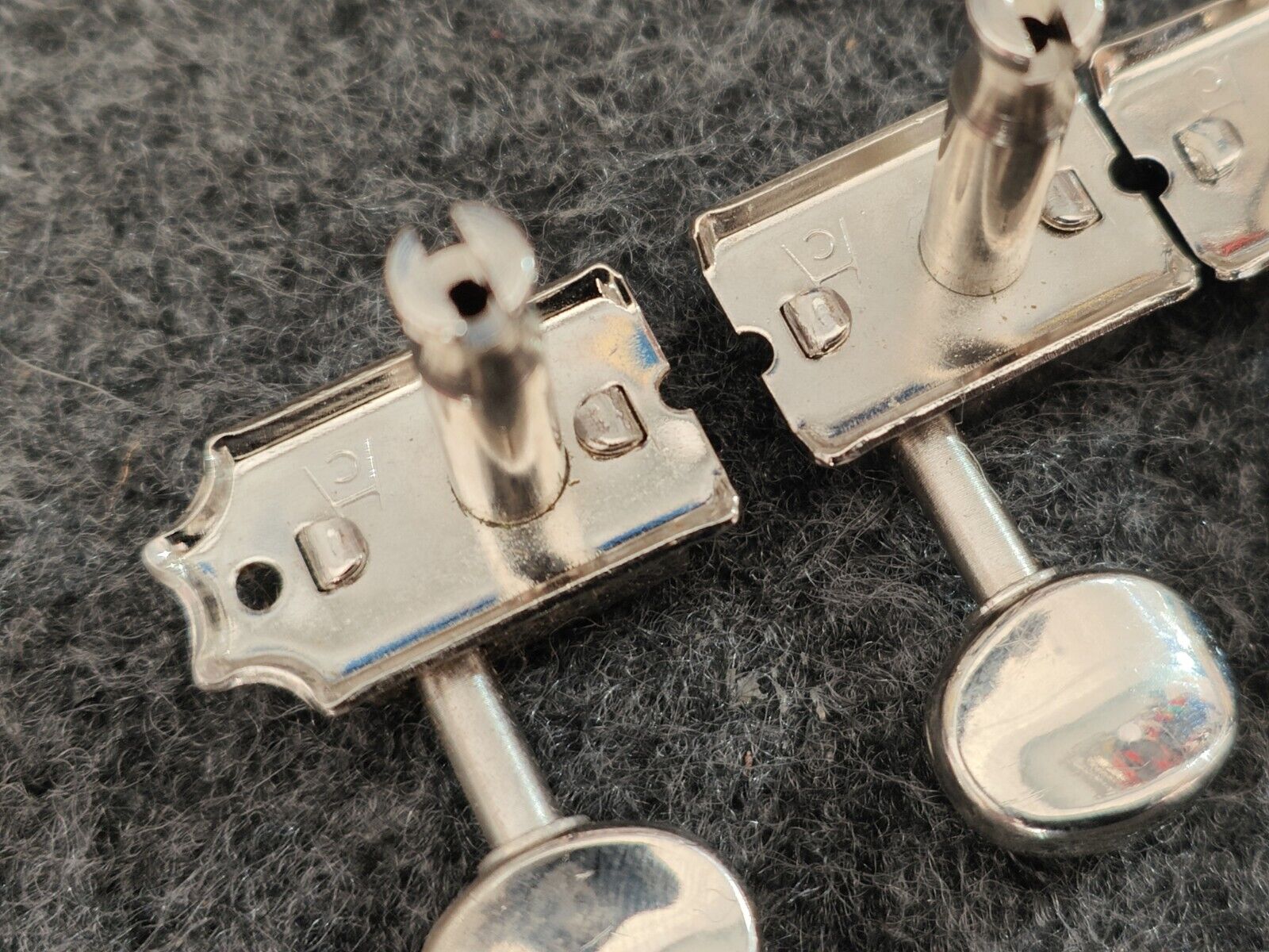 These are the tuners that the Tokai factory used for many years on their Stratocaster and Telecaster builds (both their own models and many of the guitars they built for Fender Japan). They've never been installed and have aged slightly from being stored for over 30 years, meaning they'll perfectly match a used/vintage guitar (unlike a shiny new set that won't match the ageing of the rest of the hardware). These machine heads are significantly higher quality than most Chinese sets and were likely made by Gotoh, they're smooth and responsive.