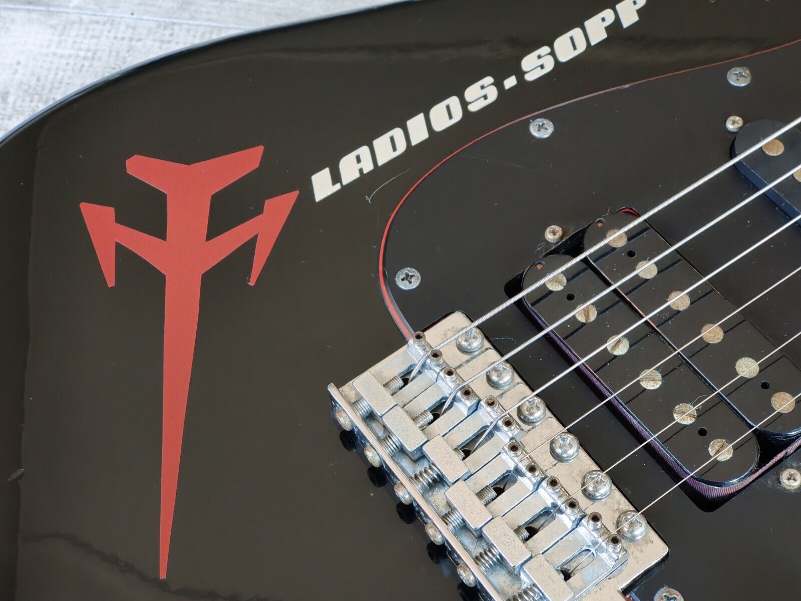 Japanese made in the 1980's to compete with Fender's Contemporary Series, the SD40 is a modernised Stratocaster built with an alder body, painted maple neck and 22 fret rosewood fingerboard that weighs 3.4kg's. HSS pickup loadout with master volume/tone controls and a 5-way blade selector, the original matte black/red pickguard has been matched with a Ladios Sopp decal that suits the aesthetic perfectly.