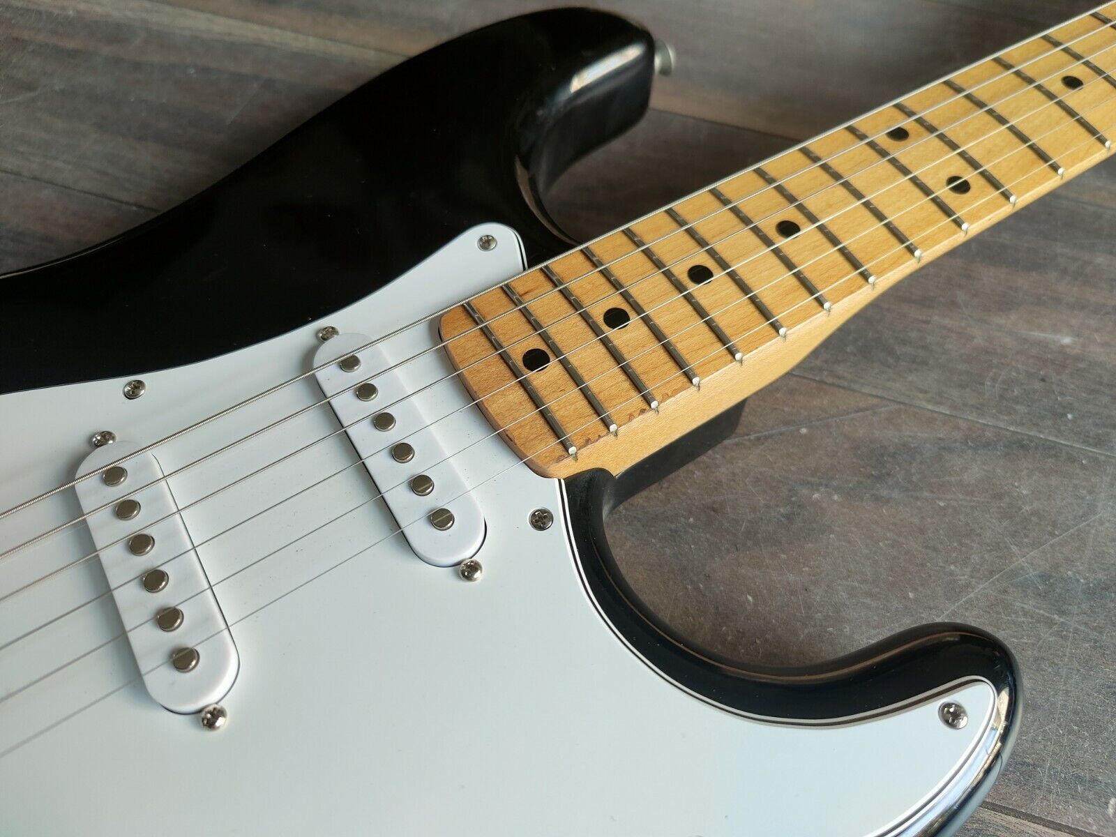 Not to be confused with the notorious motorbike of the same model series, the SR450S Super Rn'roller is one of the most undervalued Japanese Fender-style guitars on the market. Fender '54 aesthetic with an ash body with a black finish bolted to a maple neck, it weighs 3.5kg's. Has a brand new everything installed except for the tuners (fully loaded pickguard, 5-way pickup selector, tremolo system, jackplate and output jack).