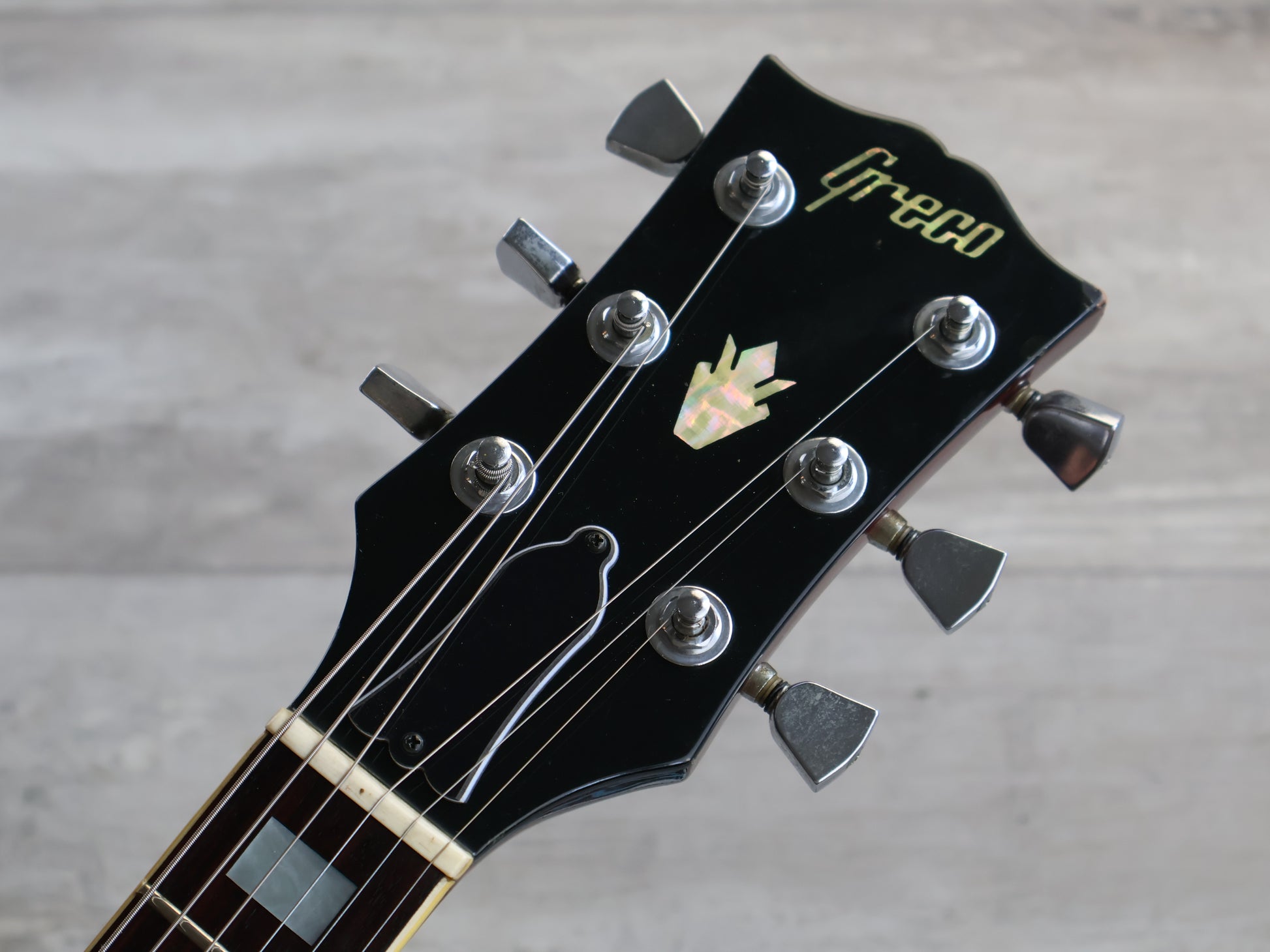 Made by the Fujigen factory for Greco's 1981 catalog, the SS-600 was an emulation of the Norlin-era Gibson SG from the mid 1970's. With a solid mahogany body set to a slim quartersawn mahogany neck and 22 fret rosewood fingerboard (12" radius), it weighs 3.1kg's. The hardware seems to be all original with Greco branded tuners, Maxon stamped PU-2 humbuckers and a harmonica bridge, it's missing the pickguard and has some aftermarket pickup rings and knobs installed.