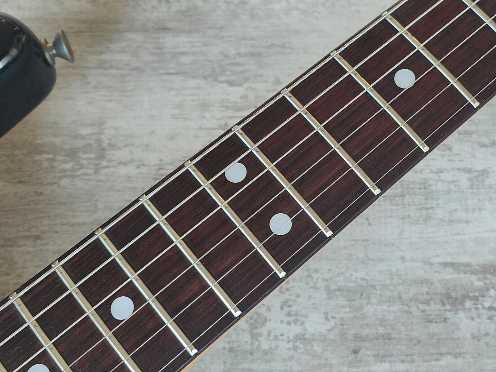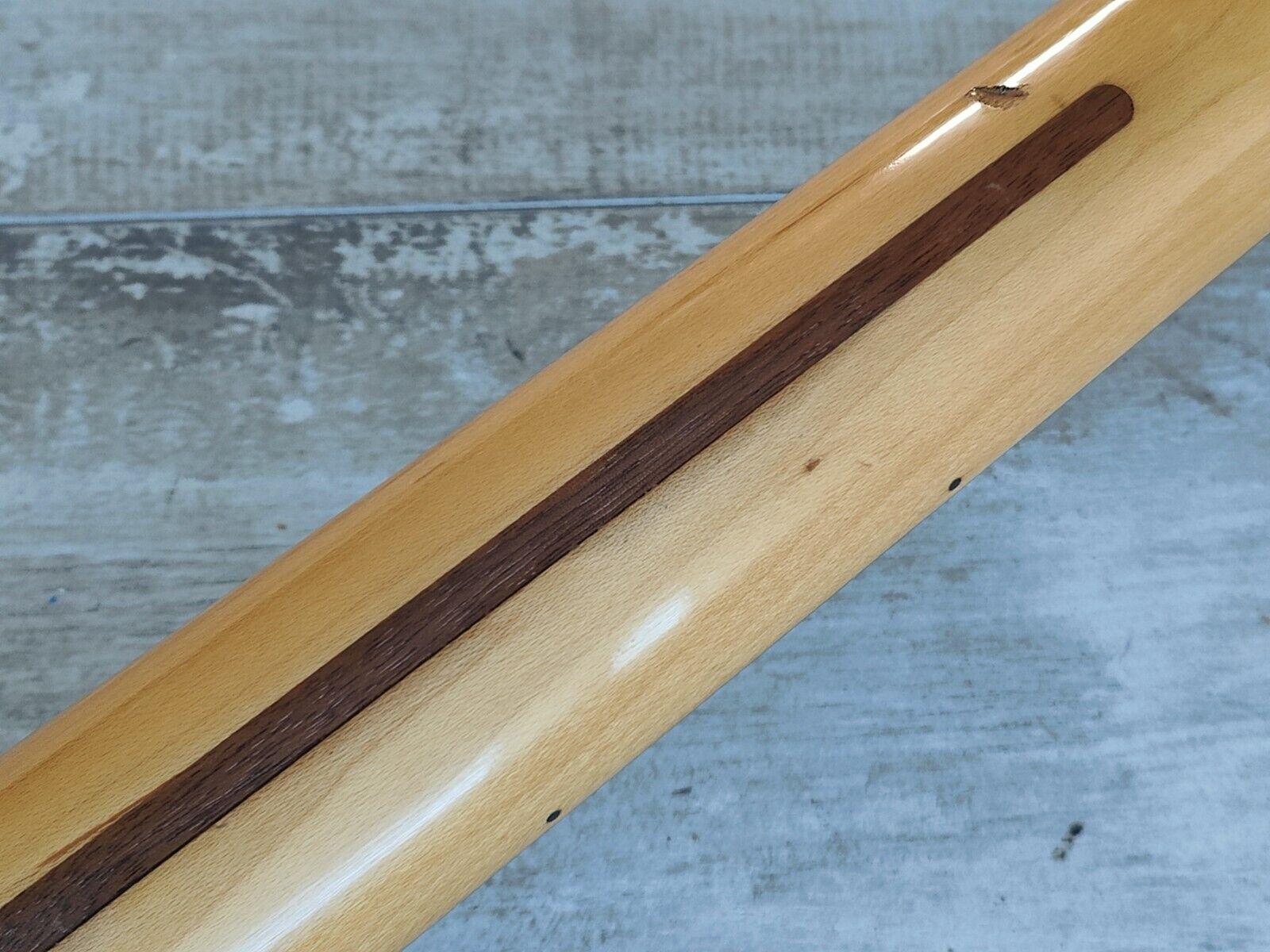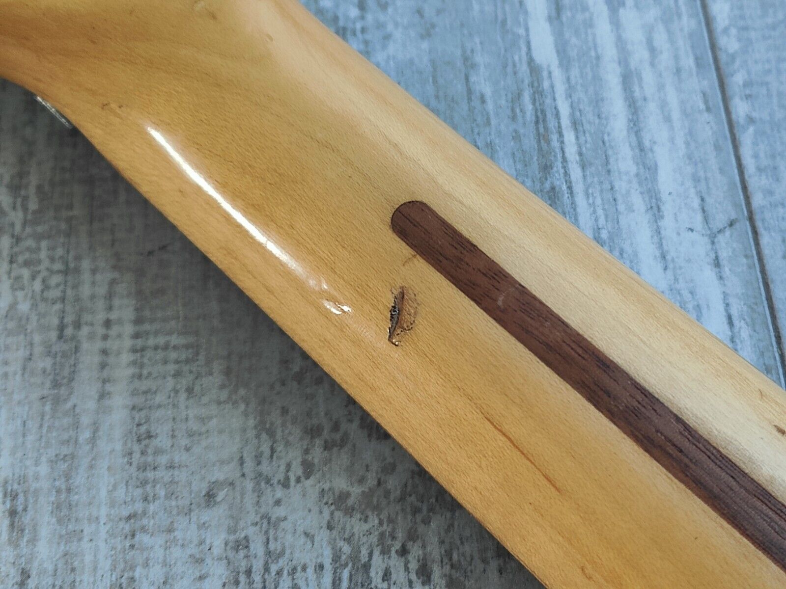 This one's been well played and well loved over the years but overall it's in decent vintage condition as pictured and received a restring and basic setup/service prior to listing. The neck is worn down to a satin smooth finish in spots and there are some cosmetic bumps and bruises to the body and neck. The frets are smooth and shiny with some light playwear, the neck is straight with a fully functional truss. The electronics are working well and the pots have been flushed/lubed.
