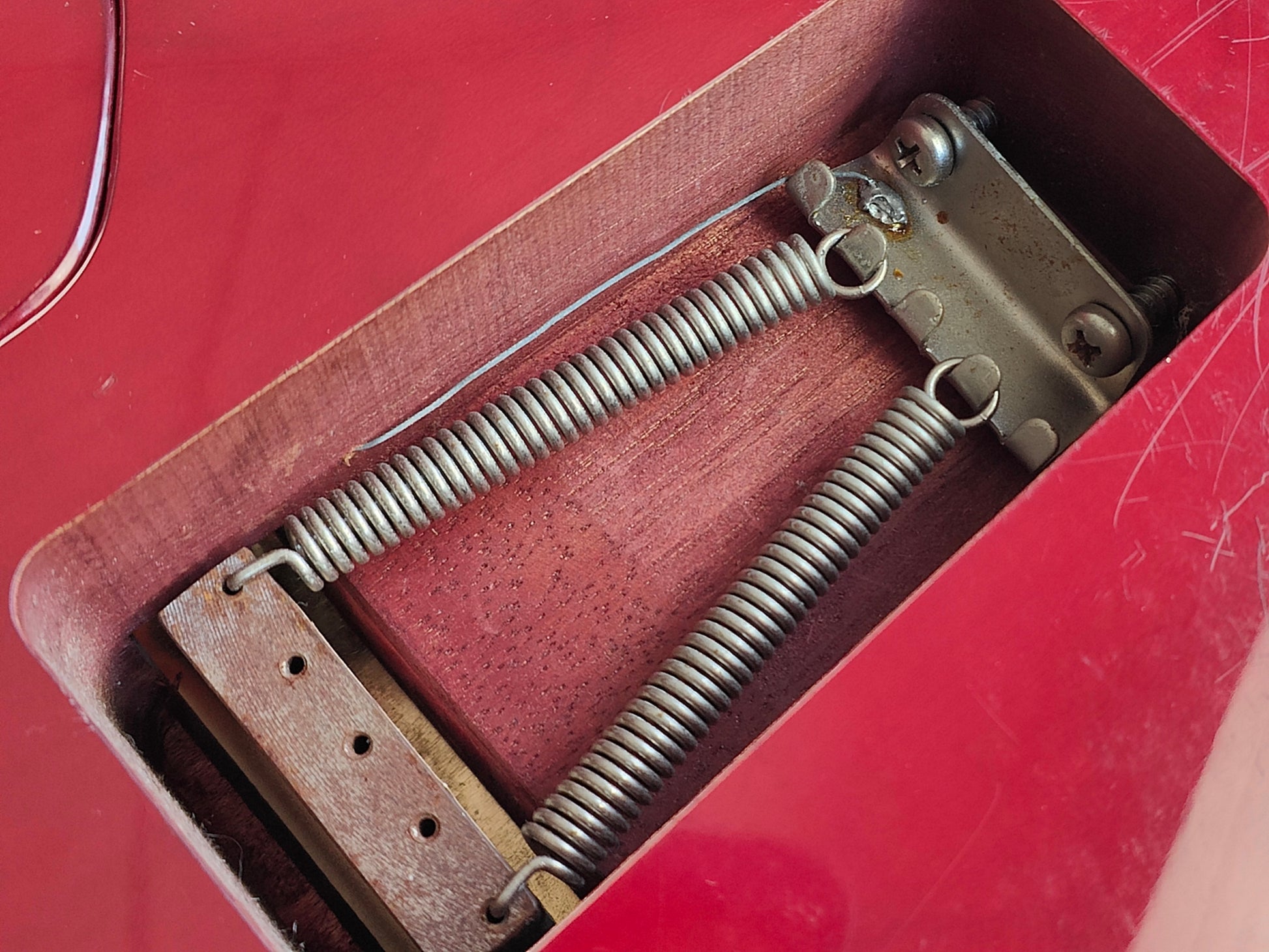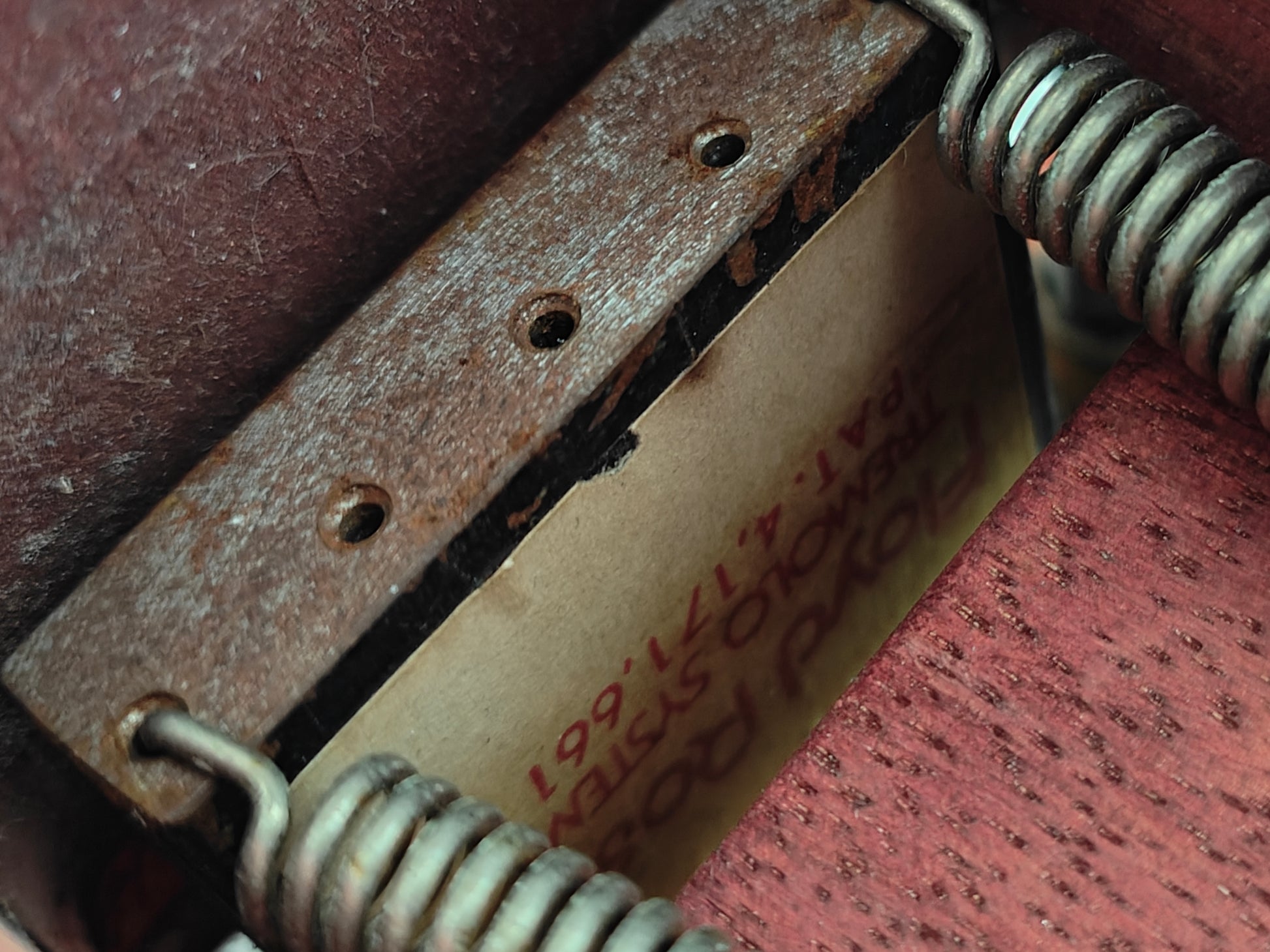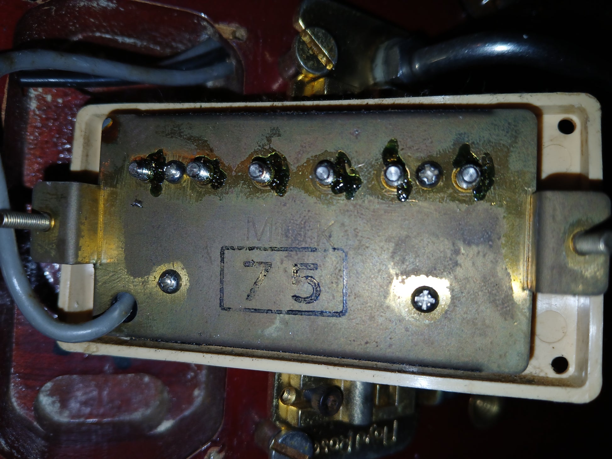 Loaded with the original MMK-75 humbuckers (only used in the highest end Matsumoku guitars) controlled by two volume and two tone knobs, a three-way selector and a pair of "dual sound" mini toggles. The Floyd Rose tremolo system and locking nut are both vintage models as pictured and the only thing that realistically seems replaced is the truss rod cover.