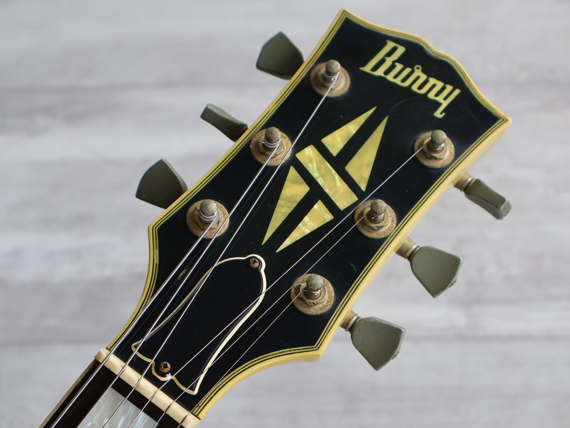 Made in Japan in 1982 by the Kasuga factory, the Burny RLC series are some of the most sought after Les Paul Custom models in the world of Japanese guitars. Mahogany construction with a rosewood fingerboard, it weighs a hefty 4.9kg's and plays with a nice slim 60's style neck profile (no volute). Looks to have the original hardware coupled with an aftermarket set of Dimarzio X2N and LiquiFire humbuckers.
