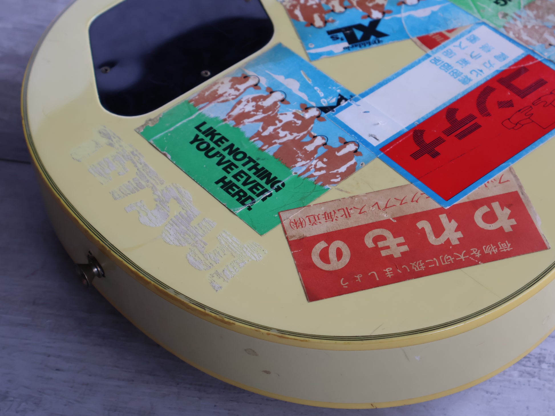 Good vintage condition as pictured with some removable stickers on the back. Frets have some reasonable wear and pitting but still play smooth, fret edge binding is still intact. Truss is adjustable and works as it should.