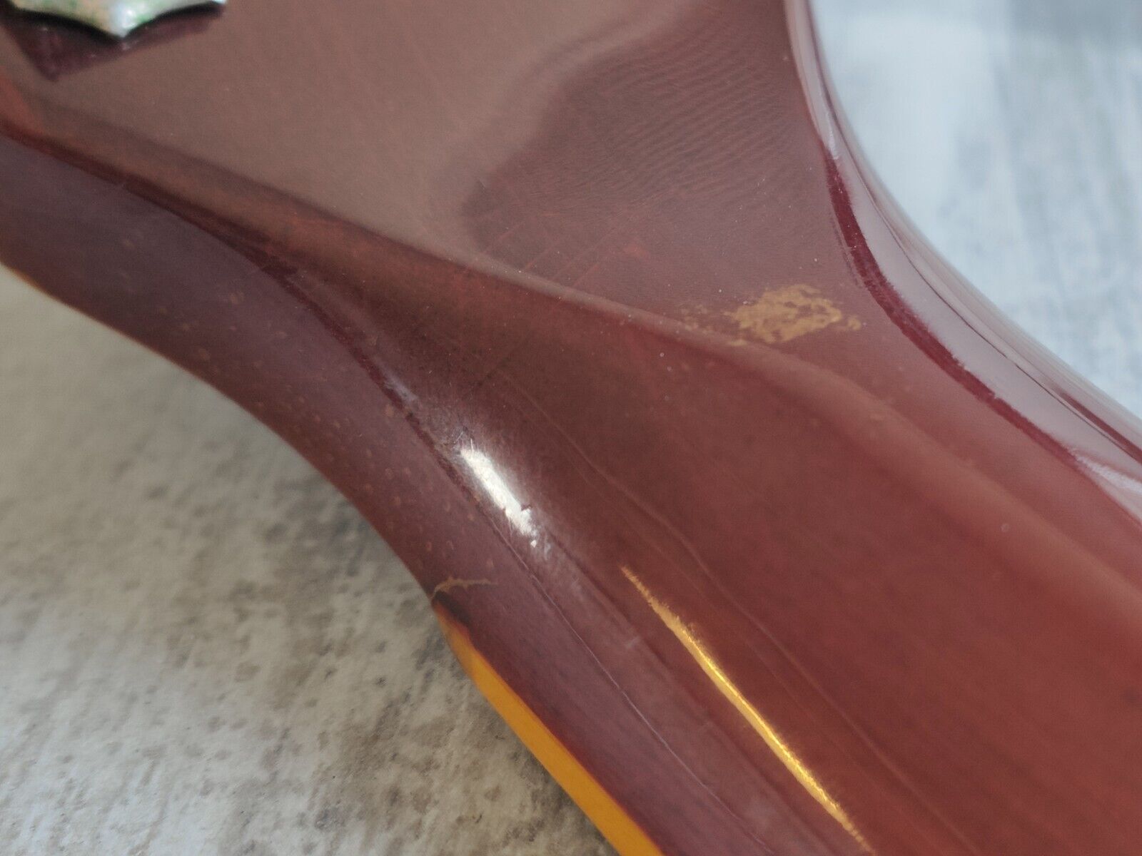 Good vintage condition as pictured with some light signs of wear as pictured. Restrung and professionally serviced recently, it plays smoothly with shiny frets and a straight neck. Has a small amount of stress to the finish around the headstock however there's no structural damage or repairs.