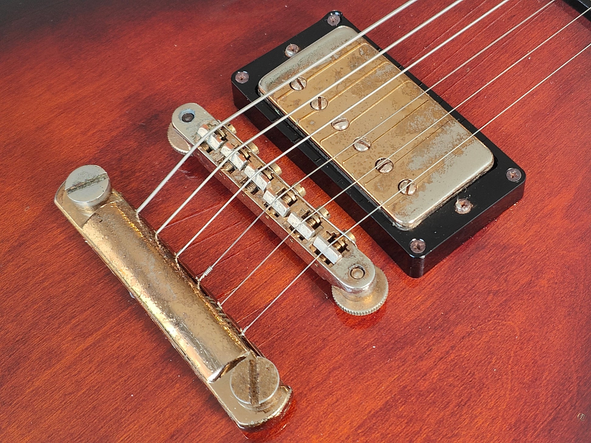 Overall it's in good vintage condition with basic signs of wear from 40 years of use. The hardware has some patina and it's missing the pickguard, the finish has a few small bumps/scratches but there's no breaks or repairs anywhere. Given a full setup and service prior to listing including a fretboard clean/oil, fret polish, truss adjustment and electronics flush. The frets have plenty of life left and play well with some light pitting, neck is straight and plays well.