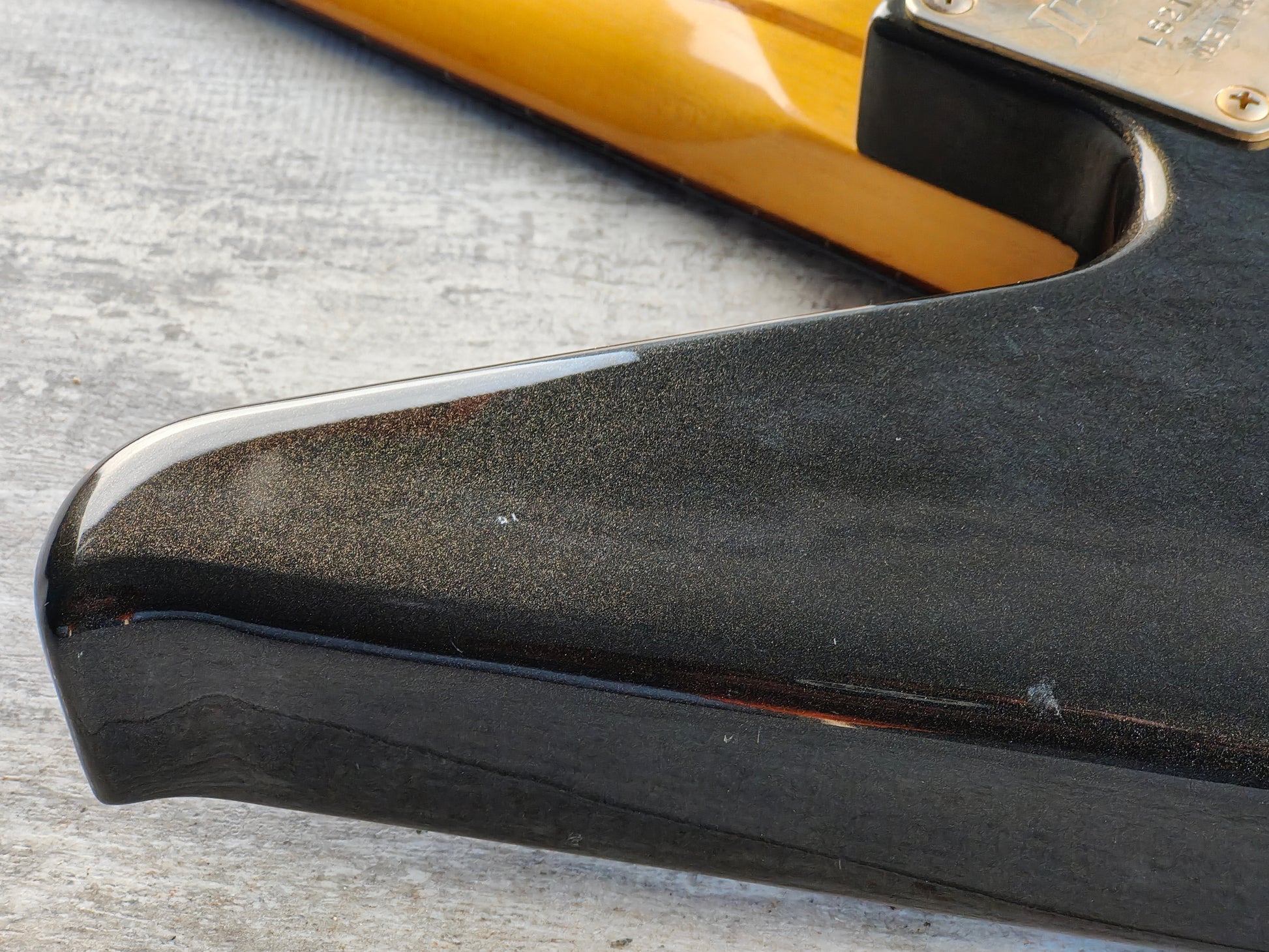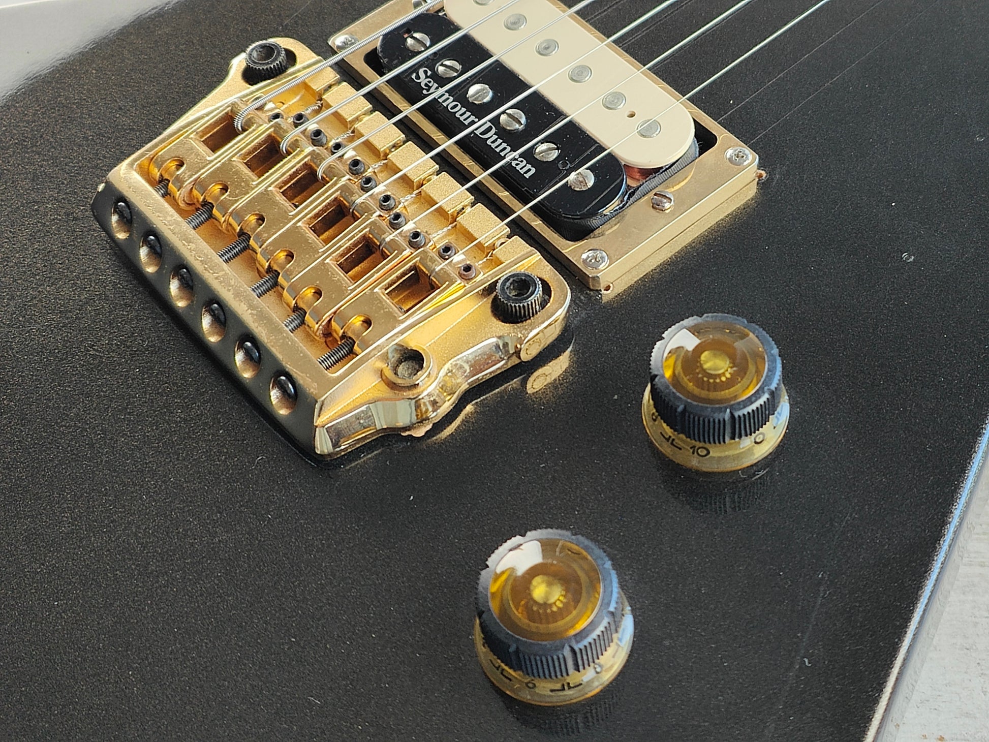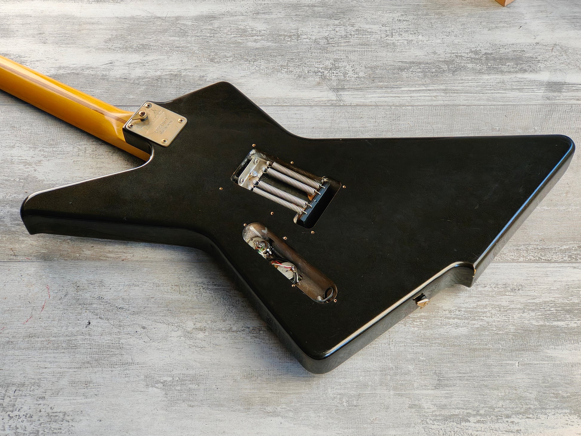 Made in late 1982 for release in their 1983 catalog, this one weighs 3.8kg's. This one has had the original bridge replaced with a Hard Rocker Pro tremolo from a DT200 model along with the pickup swapped out with a Seymour Duncan humbucker. Good vintage condition (especially for a pointy 80's guitar) with only basic signs of wear and tear as pictured. Received a full professional setup and service prior to listing, the frets are shiny and smooth and the neck is straight with a fully functional truss. Missing the back cavity cover, contact us if you'd like one made for a small fee.