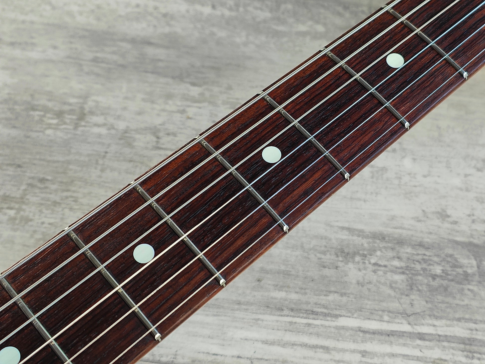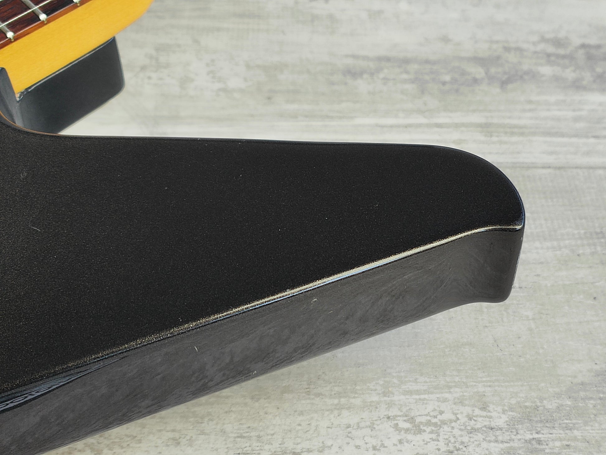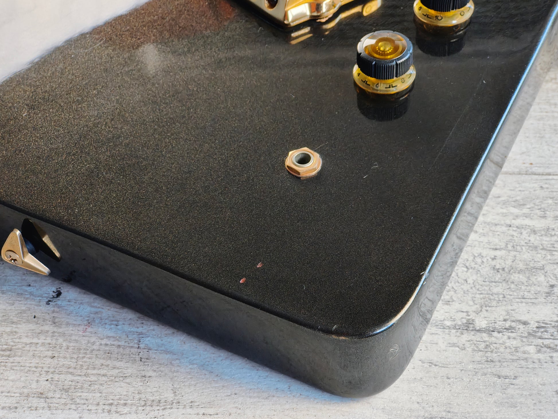 Made in late 1982 for release in their 1983 catalog, this one weighs 3.8kg's. This one has had the original bridge replaced with a Hard Rocker Pro tremolo from a DT200 model along with the pickup swapped out with a Seymour Duncan humbucker. Good vintage condition (especially for a pointy 80's guitar) with only basic signs of wear and tear as pictured. Received a full professional setup and service prior to listing, the frets are shiny and smooth and the neck is straight with a fully functional truss. Missing the back cavity cover, contact us if you'd like one made for a small fee.