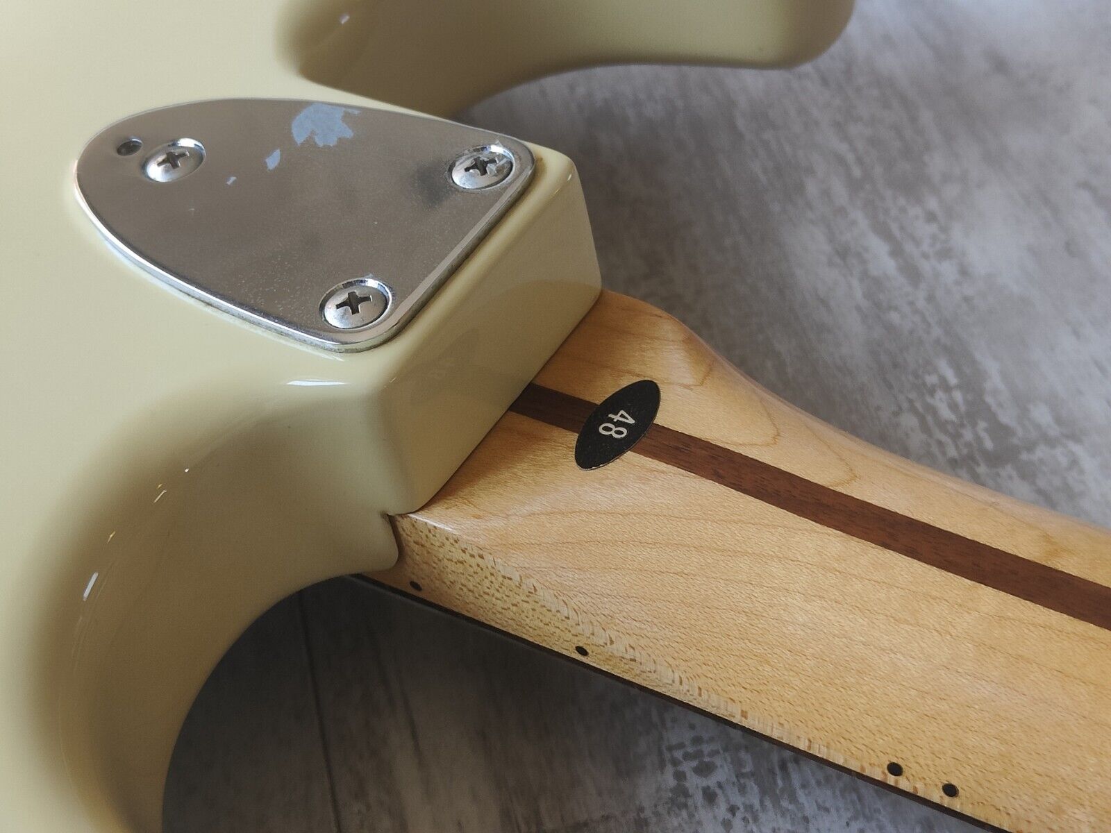 Made in Japan in 1982, the SS-48 Silver Star was Tokai’s mid-range version of the CBS era Fender Stratocaster. Large headstock with a bullet truss and tilt adjuster on a three-bolt neck plate, it weighs 3.4kg’s. Alder body with an aged Olympic White finish, one piece maple neck with a comfortable rounded C profile (40mm nut width), 21 fret rosewood fingerboard. Loaded with the Tokai SS pickups in the neck and middle positions and a Dimarzio branded single coil in the bridge.