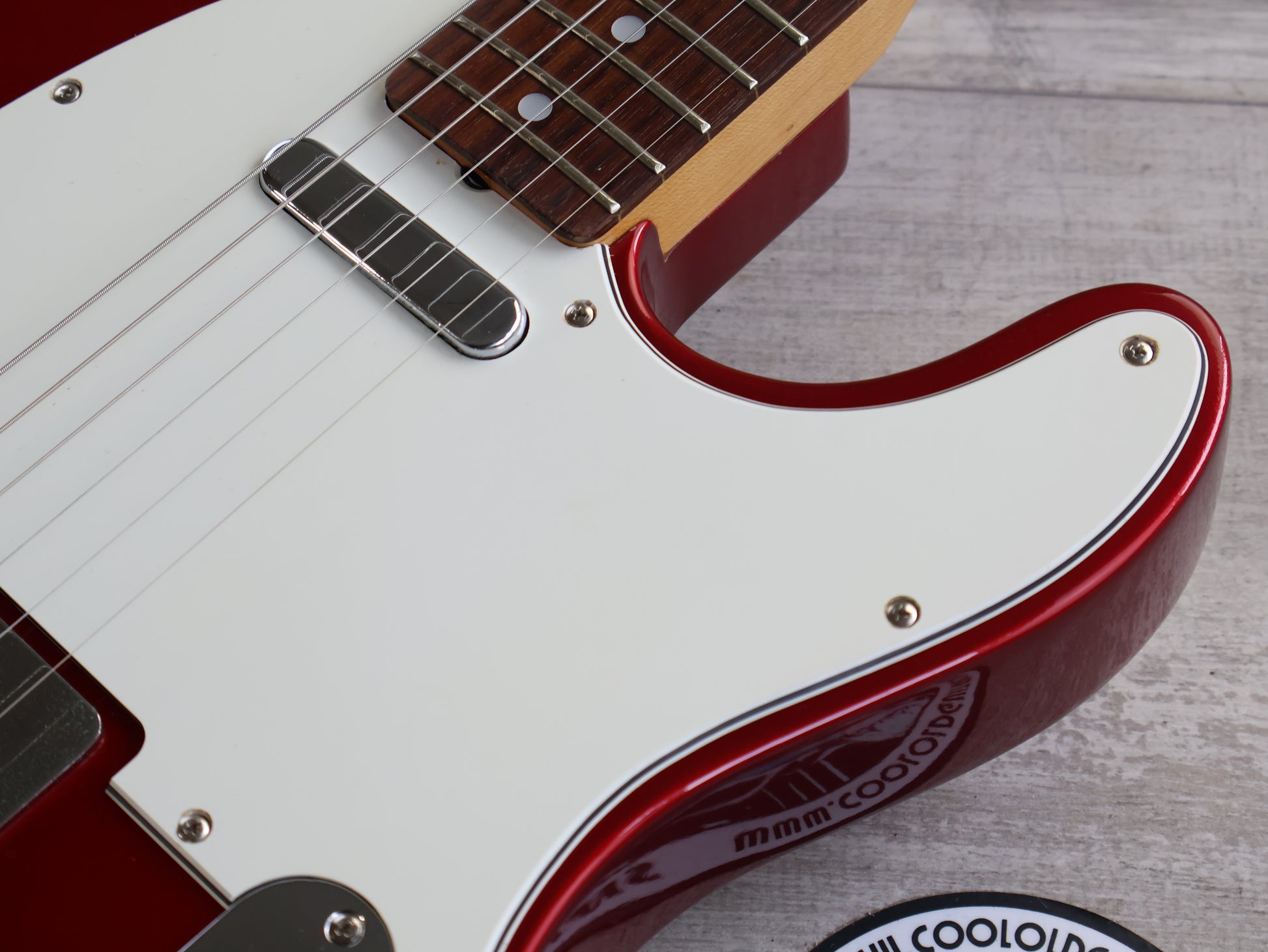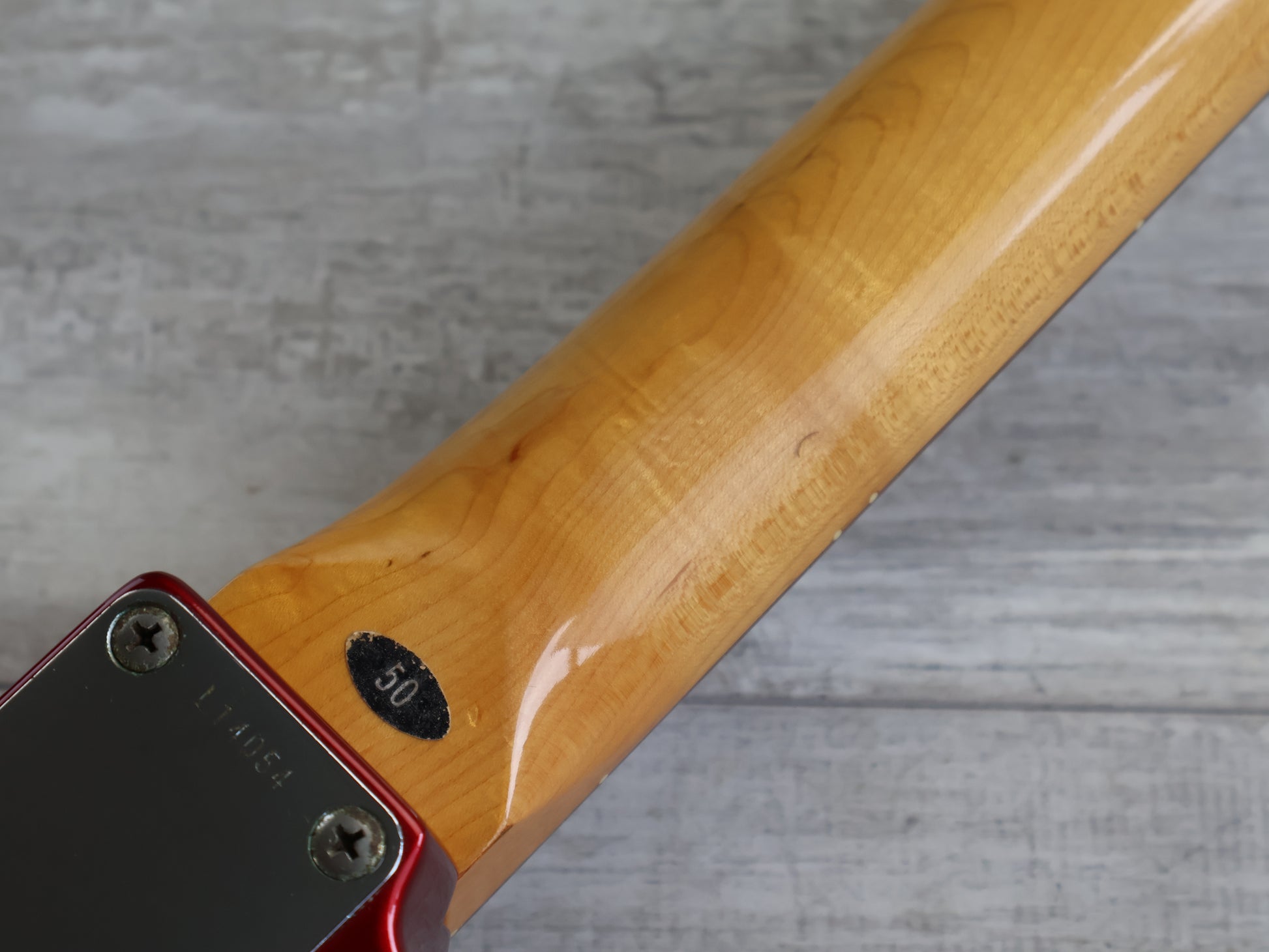 Made in Japan in the early 1980's as part of the Tokai Breezysound series, the TE-50 was a mid-range model '64 reissue Telecaster. Built with an alder body wearing a gloss black finish bolted to a "U" profile maple neck (that almost has a soft V feel) and 21 fret rosewood fingerboard (43mm nut width, 7.25" radius), it weighs 3.6kg's.