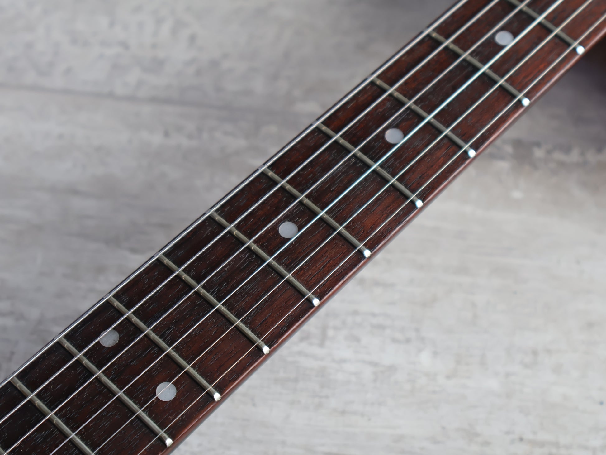 Given a basic setup and service prior to listing, it's in clean cosmetic condition as pictured with only light signs of wear for its age. The frets have plenty of life and are shiny and the neck is straight with a fully functional truss.