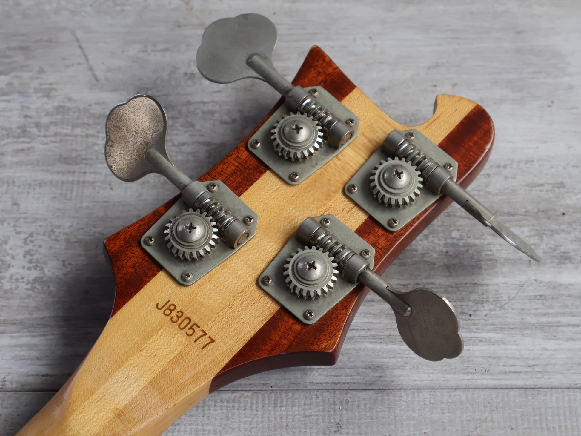 Made by the Fujigen factory in 1983 as part of the Greco "Rock History" series of guitars and basses, the PMB70 features a maple body and maple neck with a rosewood fingerboard and weighs 4.4kg's. Our legal team said we can't say much about this design as it's frowned upon by the estate of a certain Swiss engineer.