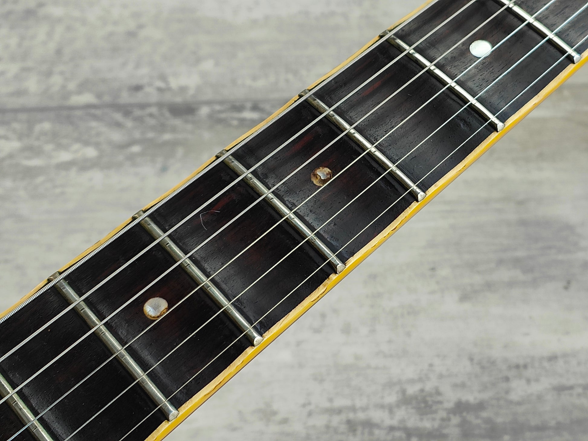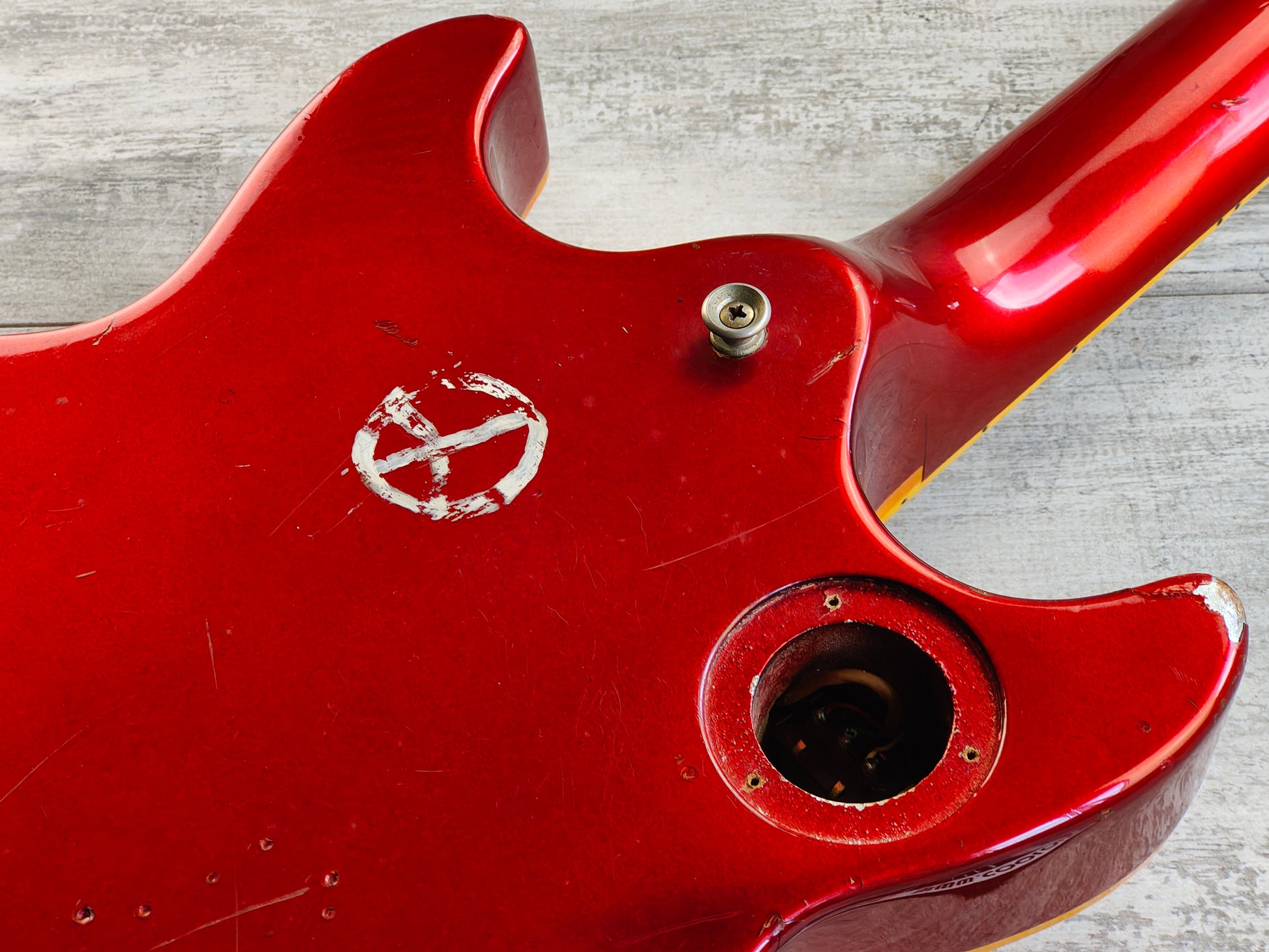 Well loved cosmetic condition with plenty of bumps and bruises as pictured. The previous owner scalloped the fingerboard and it's missing tone pots and one of the backplates. Given a basic setup and service, the frets show some wear but play well and the neck is straight with a functional truss rod.